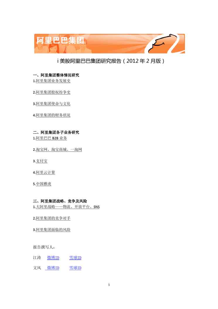 本站资深用户发布了最新的《i美股阿里巴巴集团深度研究报告》文档,以下内容为预览,详细内容可下载阅读。 声明:本站所有文章,如无特殊说明或标注,均为本站原创发布。任何个人或组织,在未征得本站同意时,禁止复制、盗用、采集、发布本站内容到任何网站、书籍等各类媒体平台。如若本站内容侵犯了原著者的合法权益,可联系我们进行处理。