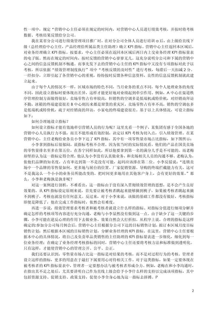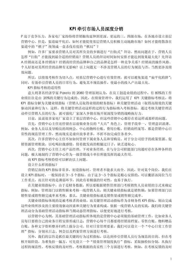 不久前,最新文档《KPI牵引市场人员深度分销》全文正式在本站发布,感兴趣的用户可以下载阅读。 声明:本站所有文章,如无特殊说明或标注,均为本站原创发布。任何个人或组织,在未征得本站同意时,禁止复制、盗用、采集、发布本站内容到任何网站、书籍等各类媒体平台。如若本站内容侵犯了原著者的合法权益,可联系我们进行处理。