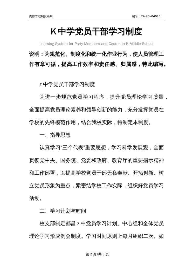 本站资深用户发布了最新的《K中学党员干部学习管理制度范本》文档,以下内容为预览,详细内容可下载阅读。 声明:本站所有文章,如无特殊说明或标注,均为本站原创发布。任何个人或组织,在未征得本站同意时,禁止复制、盗用、采集、发布本站内容到任何网站、书籍等各类媒体平台。如若本站内容侵犯了原著者的合法权益,可联系我们进行处理。