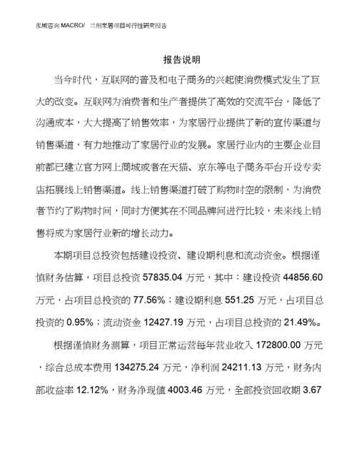 本站资深用户发布了最新的《兰州家居项目可行性研究报告》文档,以下内容为预览,详细内容可下载阅读。 声明:本站所有文章,如无特殊说明或标注,均为本站原创发布。任何个人或组织,在未征得本站同意时,禁止复制、盗用、采集、发布本站内容到任何网站、书籍等各类媒体平台。如若本站内容侵犯了原著者的合法权益,可联系我们进行处理。