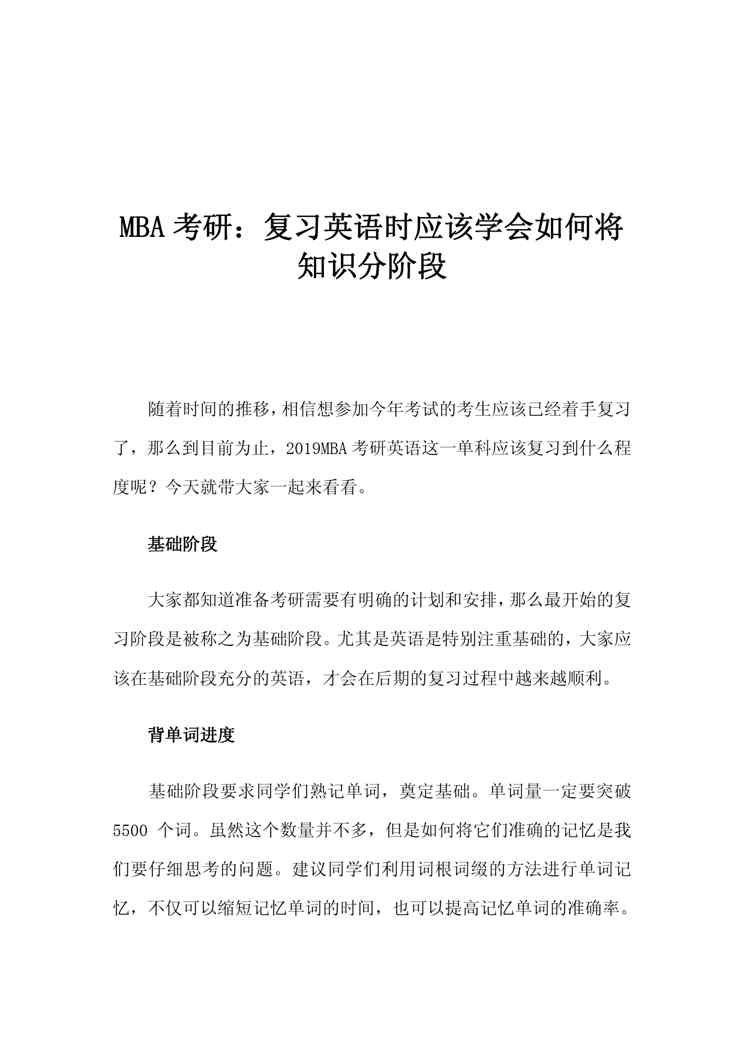 本站正式发布了《MBA考研:复习英语时应该学会如何将知识分阶段》文档,文档详细内容可下载阅读。 声明:本站所有文章,如无特殊说明或标注,均为本站原创发布。任何个人或组织,在未征得本站同意时,禁止复制、盗用、采集、发布本站内容到任何网站、书籍等各类媒体平台。如若本站内容侵犯了原著者的合法权益,可联系我们进行处理。