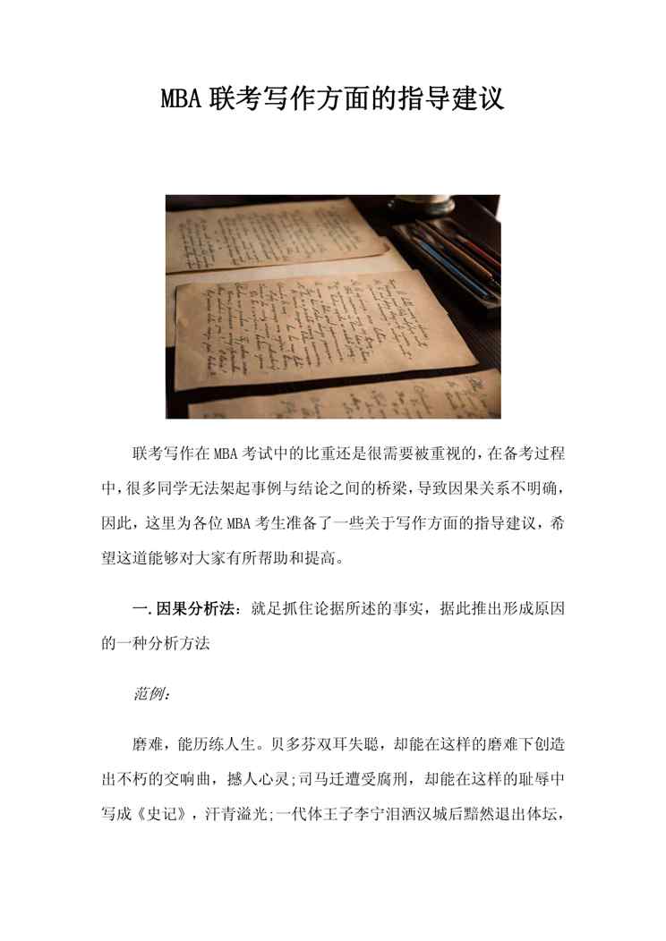本站正式发布了《MBA联考写作方面的指导建议》文档,文档详细内容可下载阅读。 声明:本站所有文章,如无特殊说明或标注,均为本站原创发布。任何个人或组织,在未征得本站同意时,禁止复制、盗用、采集、发布本站内容到任何网站、书籍等各类媒体平台。如若本站内容侵犯了原著者的合法权益,可联系我们进行处理。