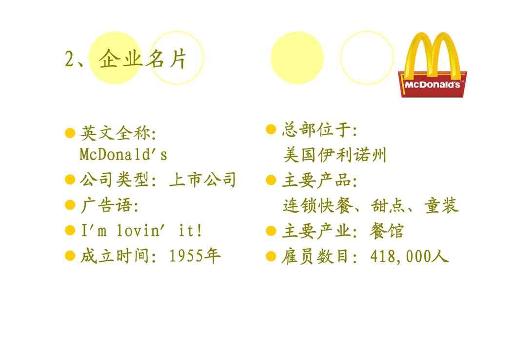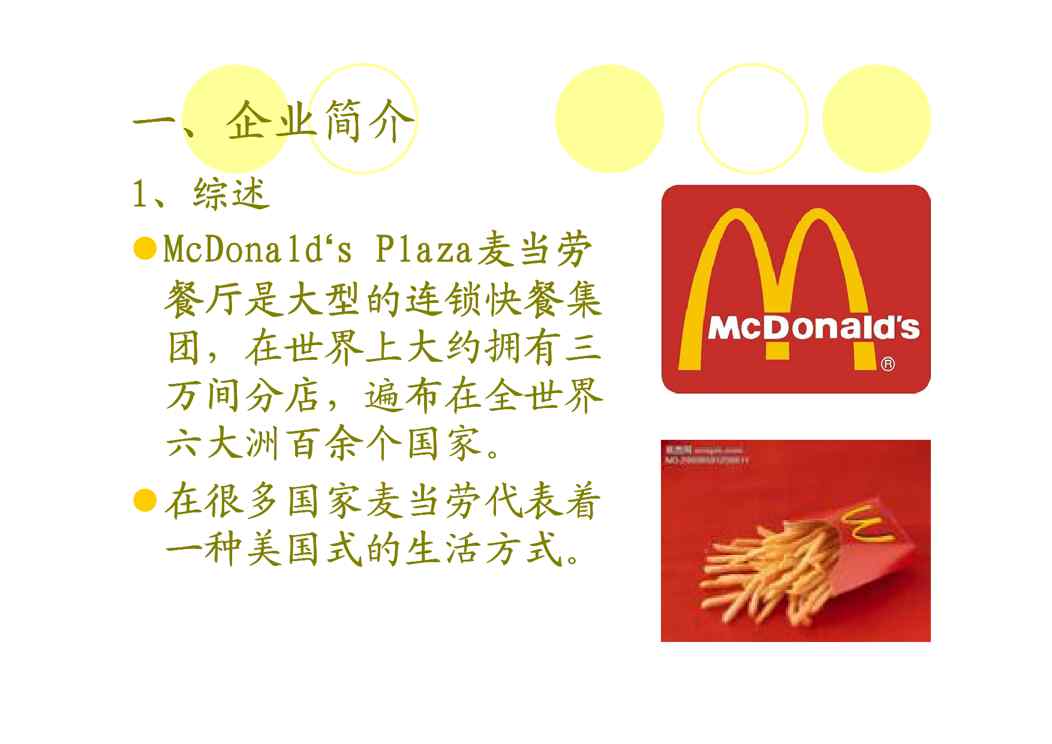 本站正式发布了《McDonald‘s企业管理调研》文档,文档详细内容可下载阅读。 声明:本站所有文章,如无特殊说明或标注,均为本站原创发布。任何个人或组织,在未征得本站同意时,禁止复制、盗用、采集、发布本站内容到任何网站、书籍等各类媒体平台。如若本站内容侵犯了原著者的合法权益,可联系我们进行处理。