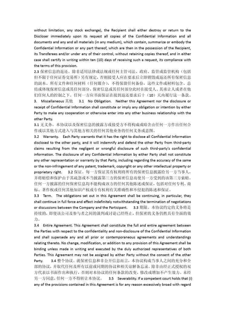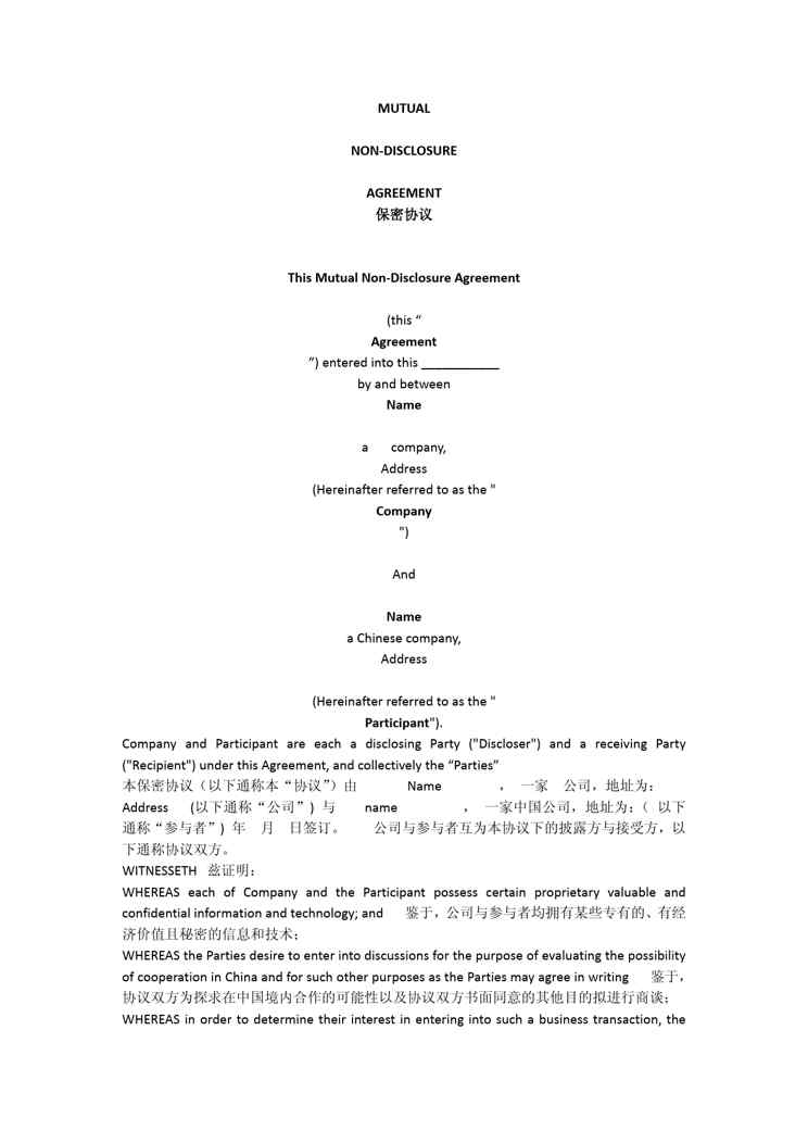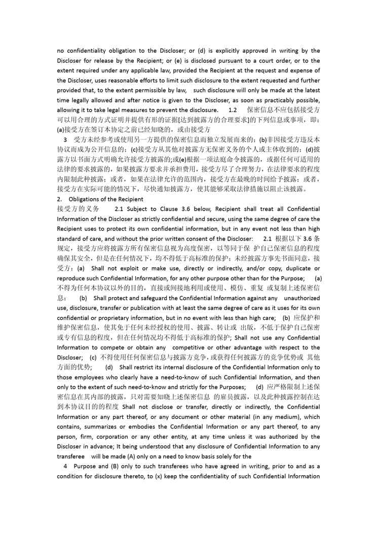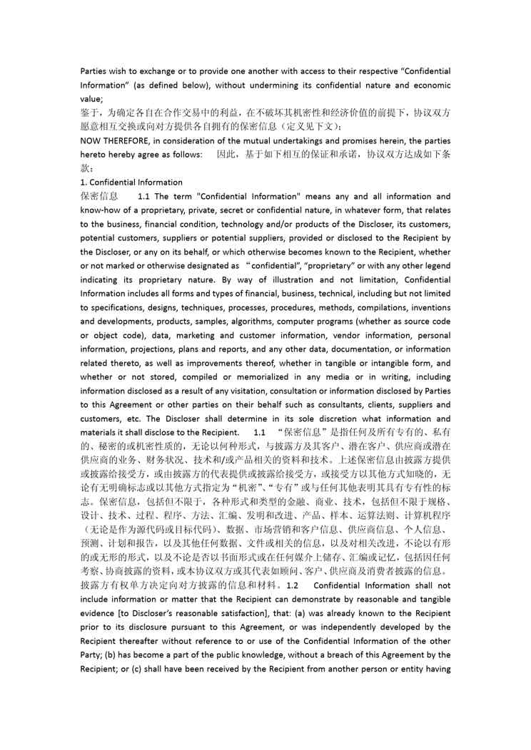 本站资深用户发布了最新的《NDA保密协议中英文》文档,以下内容为预览,详细内容可下载阅读。 声明:本站所有文章,如无特殊说明或标注,均为本站原创发布。任何个人或组织,在未征得本站同意时,禁止复制、盗用、采集、发布本站内容到任何网站、书籍等各类媒体平台。如若本站内容侵犯了原著者的合法权益,可联系我们进行处理。