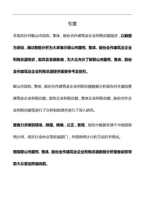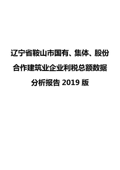 本站正式发布了《辽宁省鞍山市国有、集体、股份合作建筑业企业利税总额数据分析报告2019版》文档,文档详细内容可下载阅读。 声明:本站所有文章,如无特殊说明或标注,均为本站原创发布。任何个人或组织,在未征得本站同意时,禁止复制、盗用、采集、发布本站内容到任何网站、书籍等各类媒体平台。如若本站内容侵犯了原著者的合法权益,可联系我们进行处理。