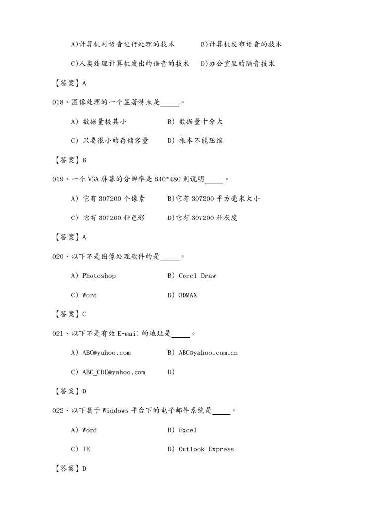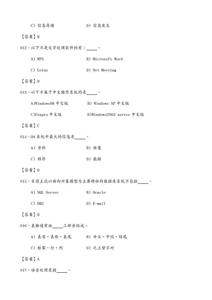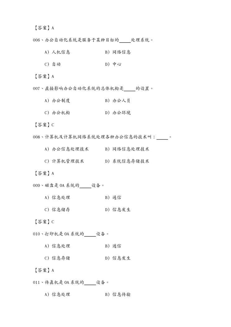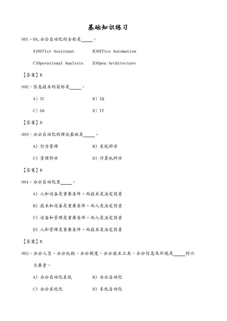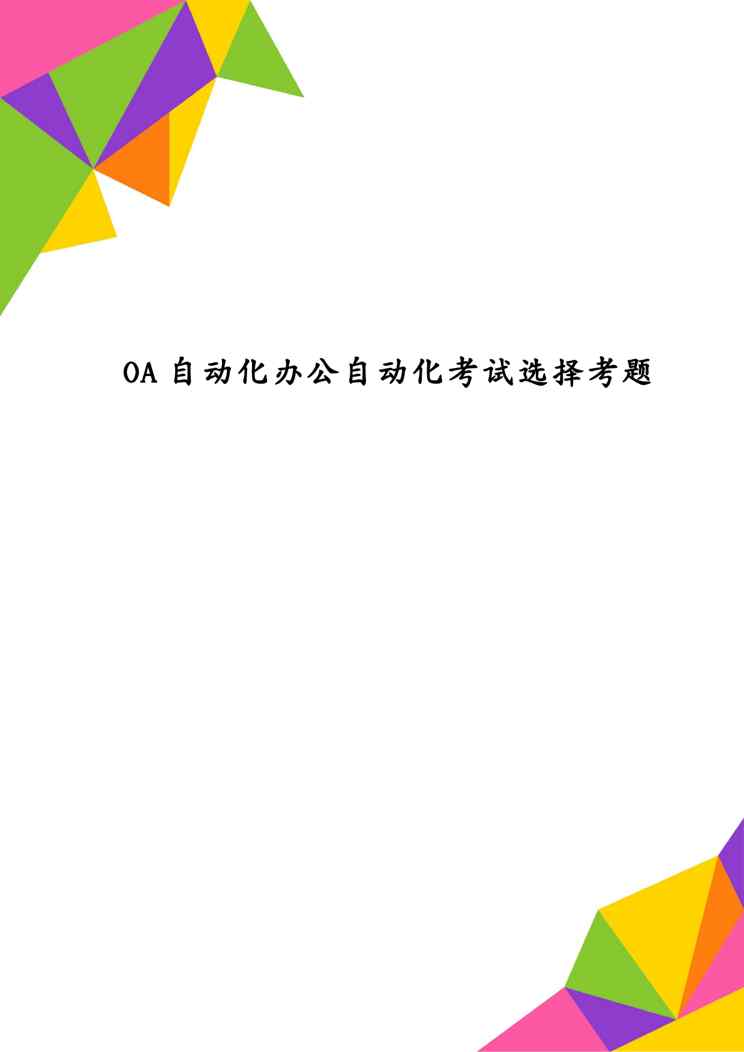 本站资深用户发布了最新的《OA自动化办公自动化考试选择考题》文档,以下内容为预览,详细内容可下载阅读。 声明:本站所有文章,如无特殊说明或标注,均为本站原创发布。任何个人或组织,在未征得本站同意时,禁止复制、盗用、采集、发布本站内容到任何网站、书籍等各类媒体平台。如若本站内容侵犯了原著者的合法权益,可联系我们进行处理。