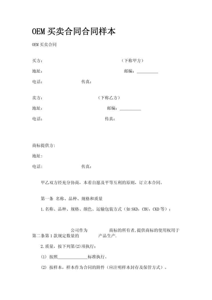 本站正式发布了《OEM买卖合同合同样本》文档,文档详细内容可下载阅读。 声明:本站所有文章,如无特殊说明或标注,均为本站原创发布。任何个人或组织,在未征得本站同意时,禁止复制、盗用、采集、发布本站内容到任何网站、书籍等各类媒体平台。如若本站内容侵犯了原著者的合法权益,可联系我们进行处理。