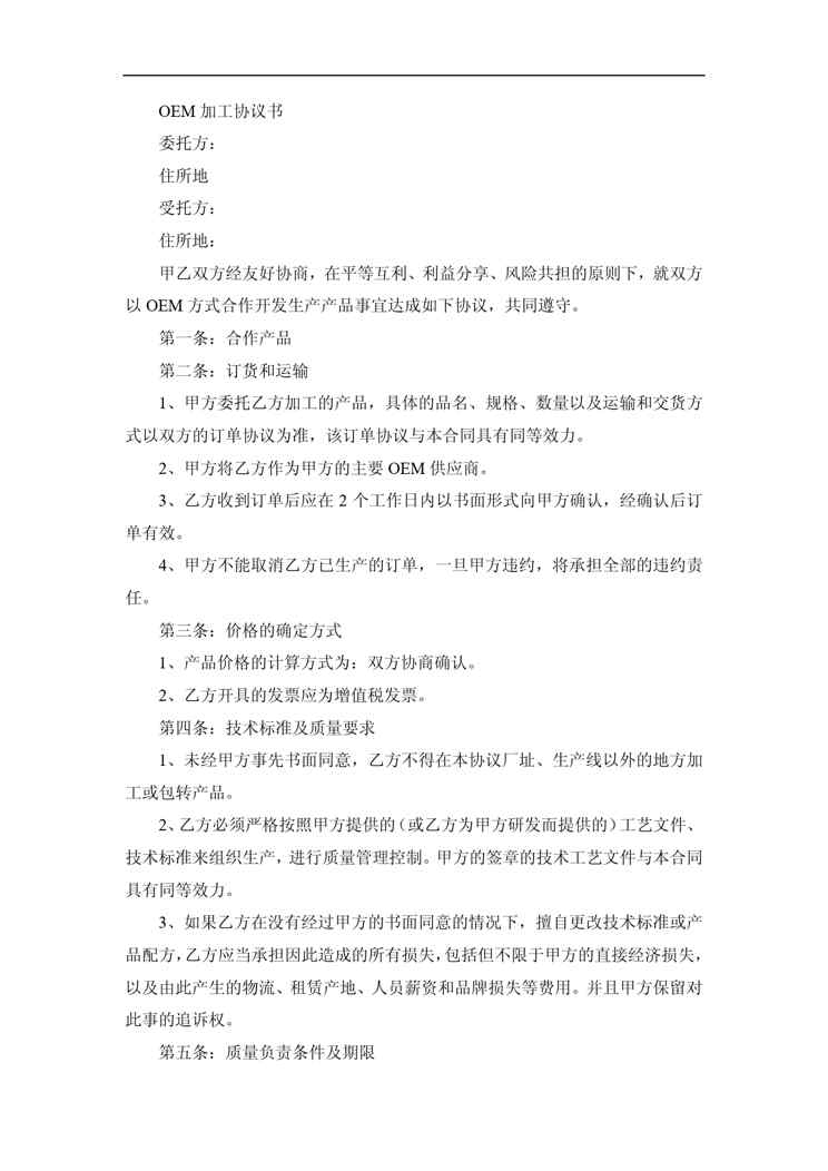 本站正式发布了《OEM加工协议书》文档,文档详细内容可下载阅读。 声明:本站所有文章,如无特殊说明或标注,均为本站原创发布。任何个人或组织,在未征得本站同意时,禁止复制、盗用、采集、发布本站内容到任何网站、书籍等各类媒体平台。如若本站内容侵犯了原著者的合法权益,可联系我们进行处理。