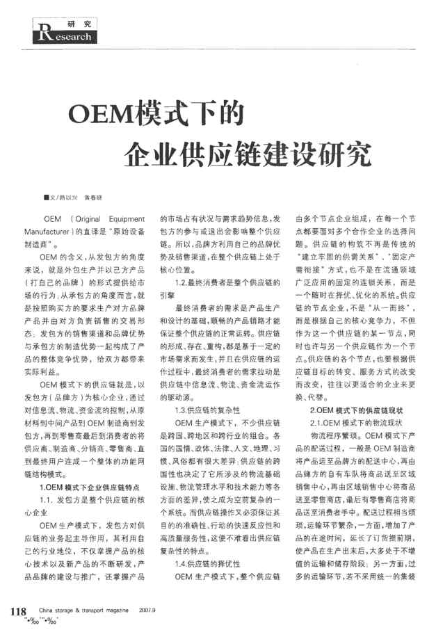 本站正式发布了《OEM模式下的企业供应链建设研究》文档,文档详细内容可下载阅读。 声明:本站所有文章,如无特殊说明或标注,均为本站原创发布。任何个人或组织,在未征得本站同意时,禁止复制、盗用、采集、发布本站内容到任何网站、书籍等各类媒体平台。如若本站内容侵犯了原著者的合法权益,可联系我们进行处理。