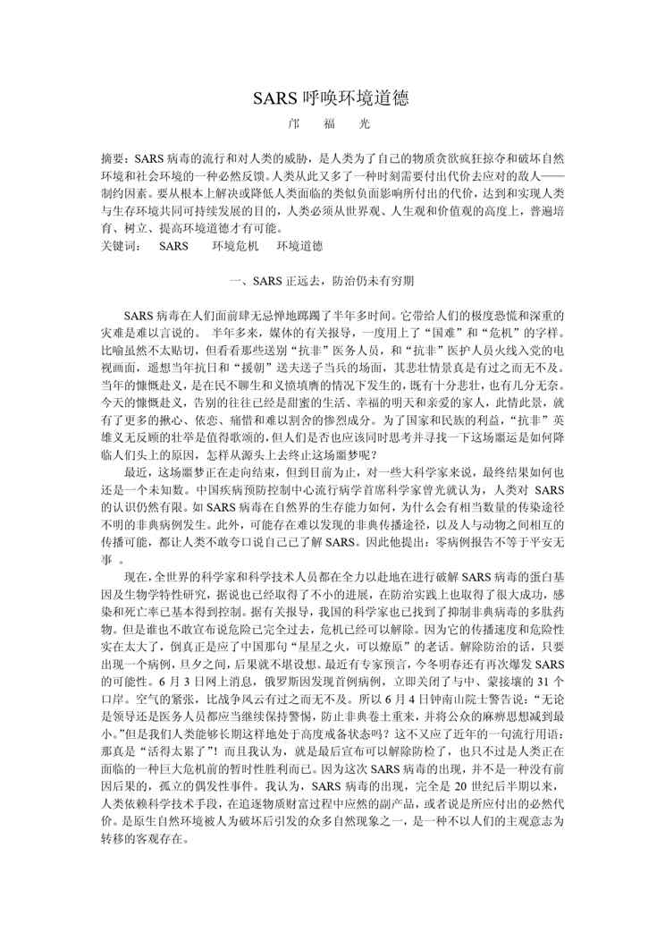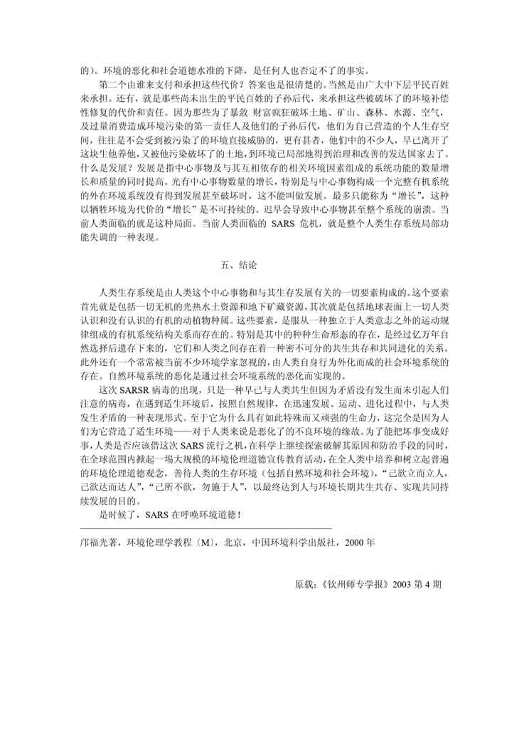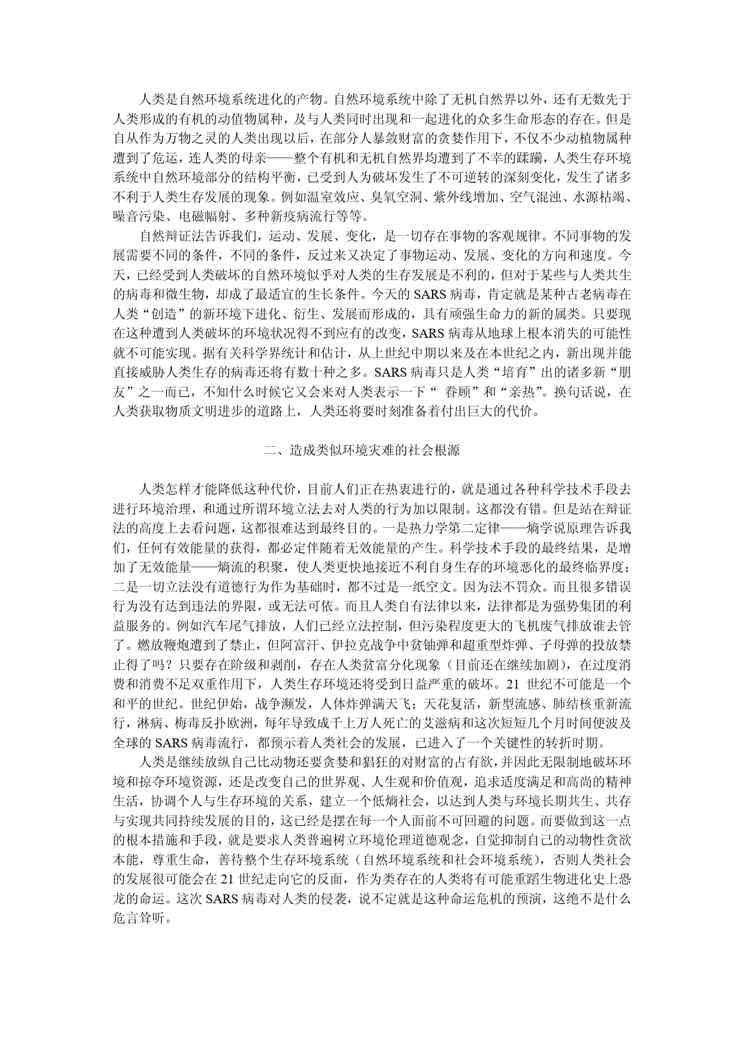 本站正式发布了《SARS呼唤环境道德》文档,文档详细内容可下载阅读。 声明:本站所有文章,如无特殊说明或标注,均为本站原创发布。任何个人或组织,在未征得本站同意时,禁止复制、盗用、采集、发布本站内容到任何网站、书籍等各类媒体平台。如若本站内容侵犯了原著者的合法权益,可联系我们进行处理。