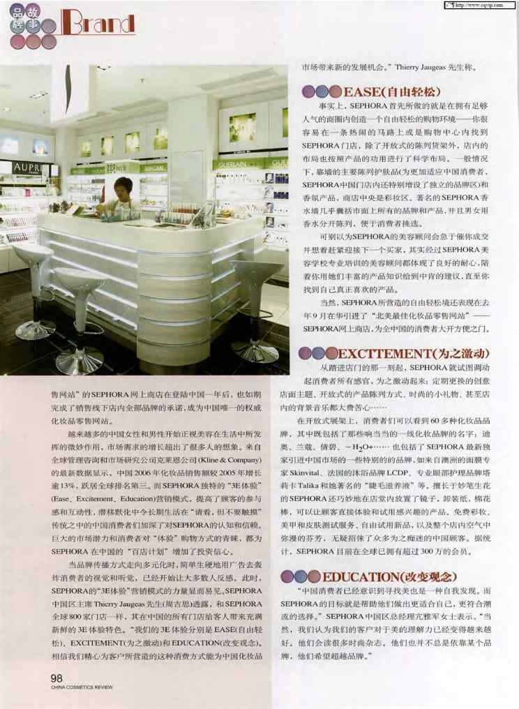 本站正式发布了《SEPHORA丝芙兰——全球化妆品零售权威带来“3E”体验的营销模式》文档,文档详细内容可下载阅读。 声明:本站所有文章,如无特殊说明或标注,均为本站原创发布。任何个人或组织,在未征得本站同意时,禁止复制、盗用、采集、发布本站内容到任何网站、书籍等各类媒体平台。如若本站内容侵犯了原著者的合法权益,可联系我们进行处理。