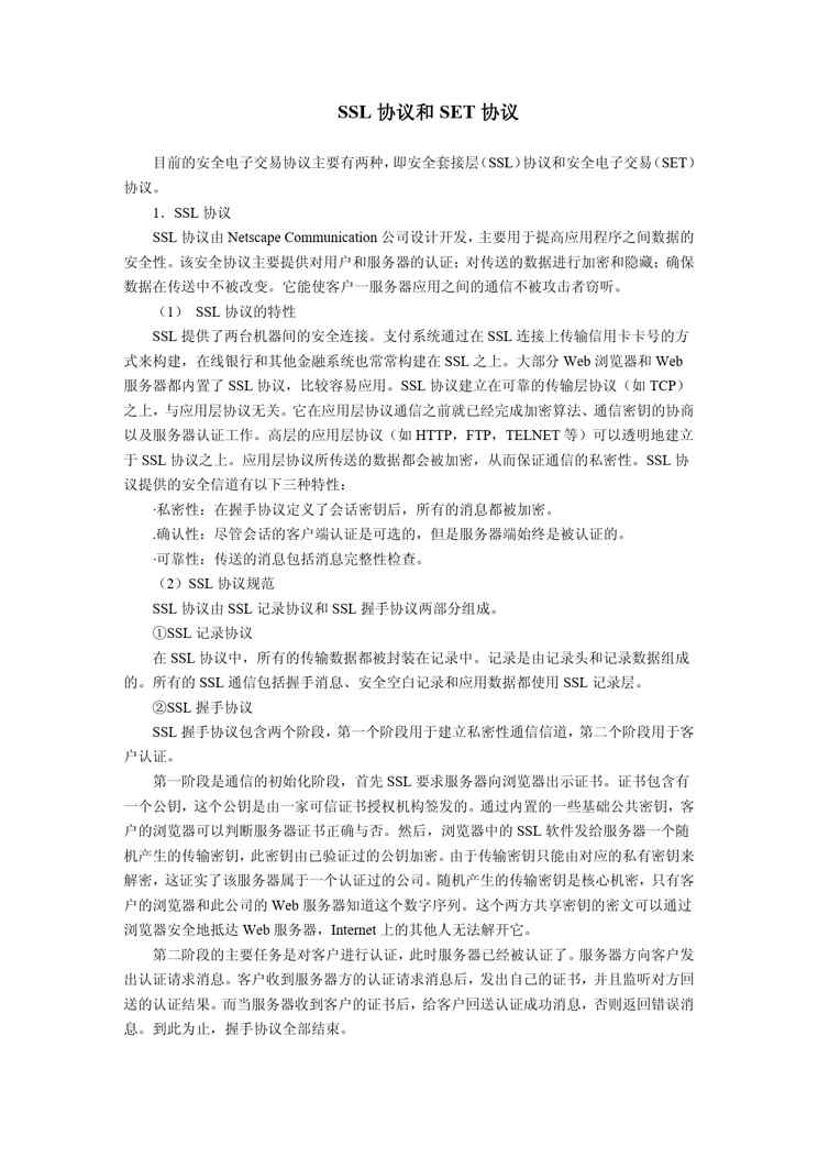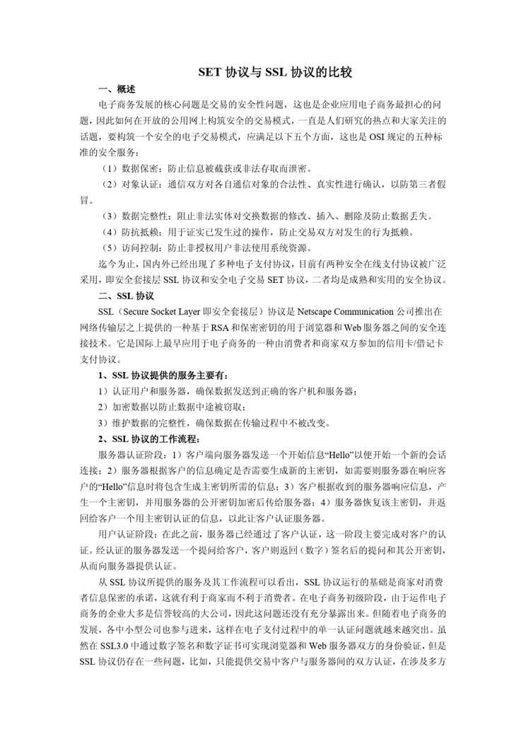 不久前,最新文档《SET协议与SSL协议的比较》全文正式在本站发布,感兴趣的用户可以下载阅读。 声明:本站所有文章,如无特殊说明或标注,均为本站原创发布。任何个人或组织,在未征得本站同意时,禁止复制、盗用、采集、发布本站内容到任何网站、书籍等各类媒体平台。如若本站内容侵犯了原著者的合法权益,可联系我们进行处理。