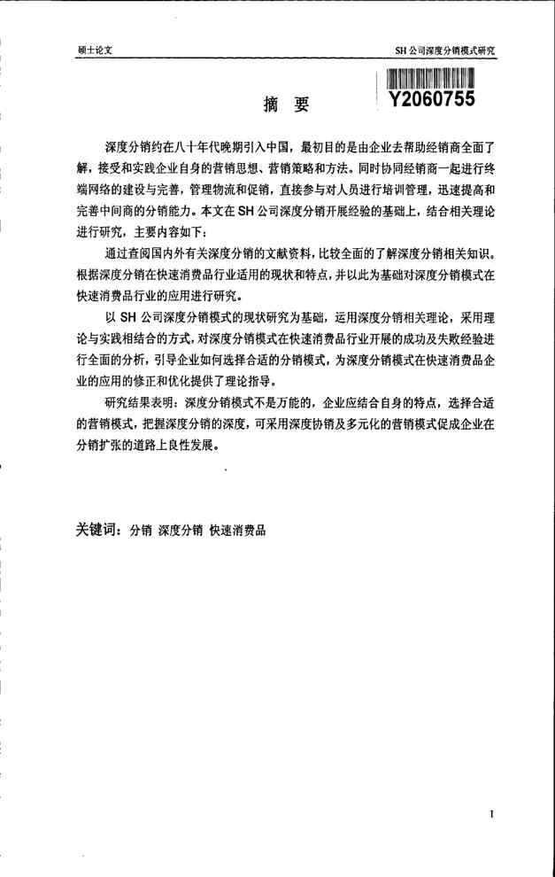 本站资深用户发布了最新的《SH公司深度分销模式研究》文档,以下内容为预览,详细内容可下载阅读。 声明:本站所有文章,如无特殊说明或标注,均为本站原创发布。任何个人或组织,在未征得本站同意时,禁止复制、盗用、采集、发布本站内容到任何网站、书籍等各类媒体平台。如若本站内容侵犯了原著者的合法权益,可联系我们进行处理。