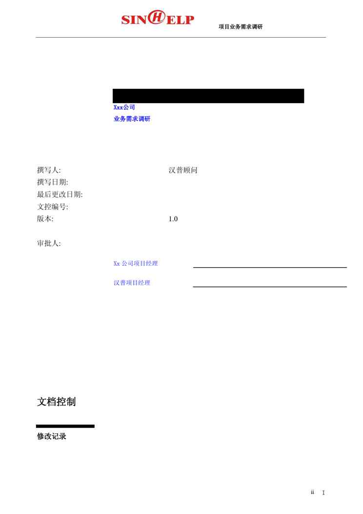 本站资深用户发布了最新的《XX公司业务需求调研》文档,以下内容为预览,详细内容可下载阅读。 声明:本站所有文章,如无特殊说明或标注,均为本站原创发布。任何个人或组织,在未征得本站同意时,禁止复制、盗用、采集、发布本站内容到任何网站、书籍等各类媒体平台。如若本站内容侵犯了原著者的合法权益,可联系我们进行处理。