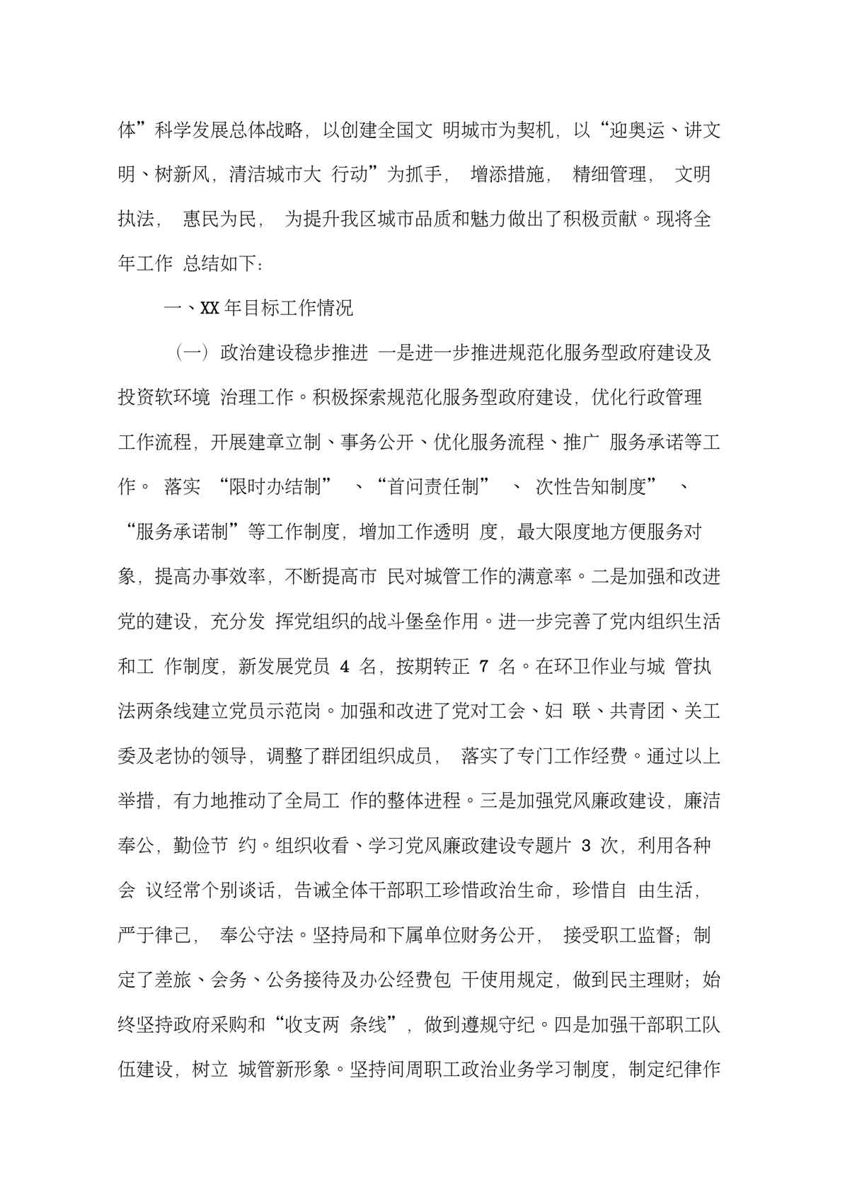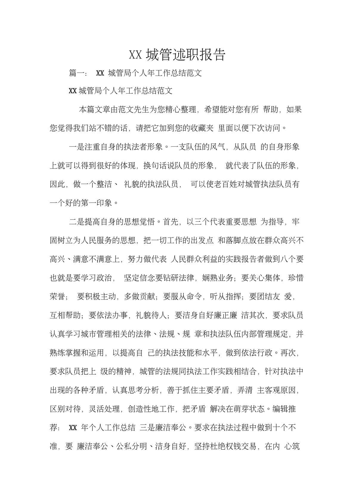 不久前,最新文档《XX城管述职报告》全文正式在本站发布,感兴趣的用户可以下载阅读。 声明:本站所有文章,如无特殊说明或标注,均为本站原创发布。任何个人或组织,在未征得本站同意时,禁止复制、盗用、采集、发布本站内容到任何网站、书籍等各类媒体平台。如若本站内容侵犯了原著者的合法权益,可联系我们进行处理。