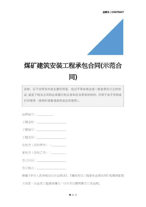 本站资深用户发布了最新的《煤矿建筑安装工程承包合同(示范合同)》文档,以下内容为预览,详细内容可下载阅读。