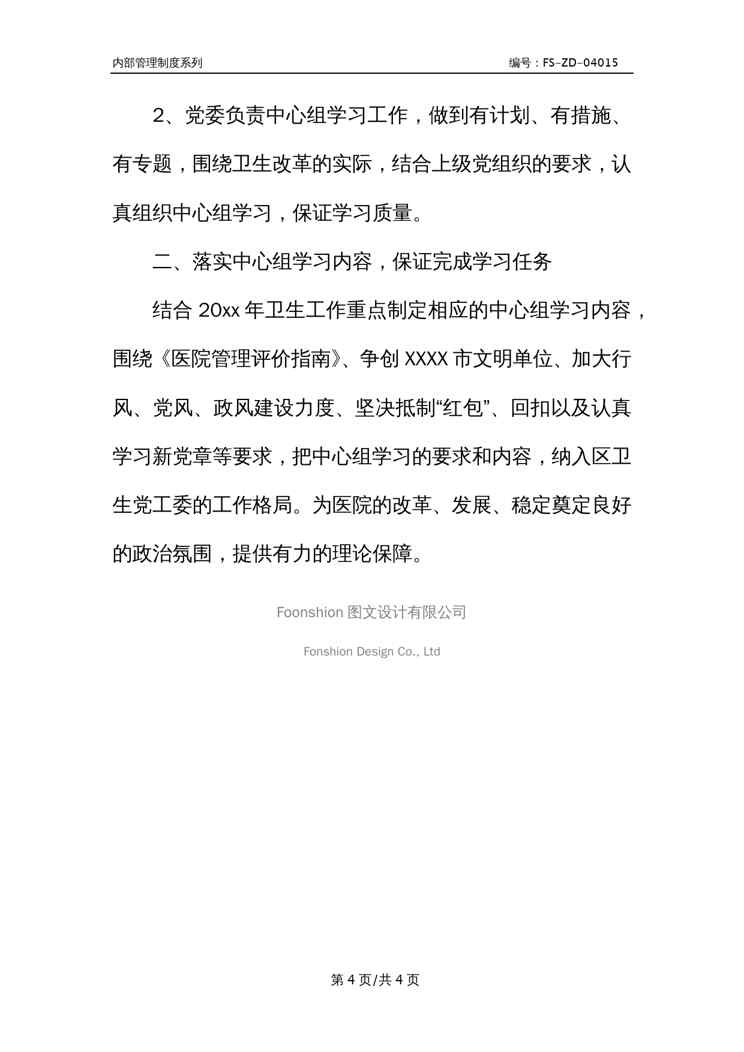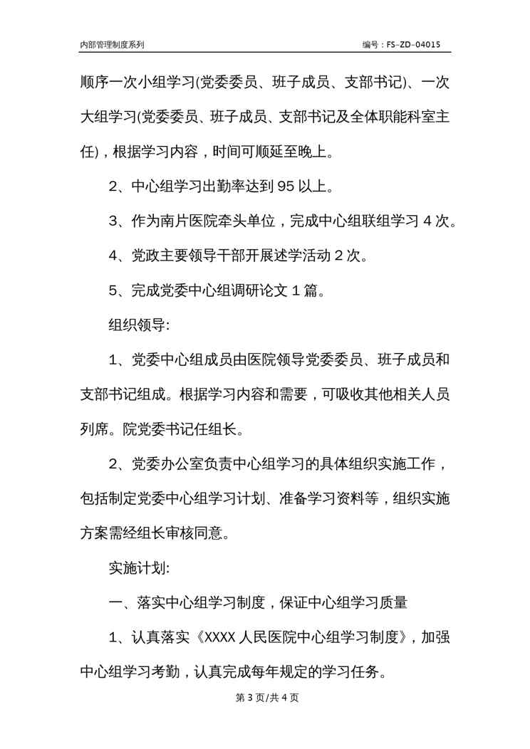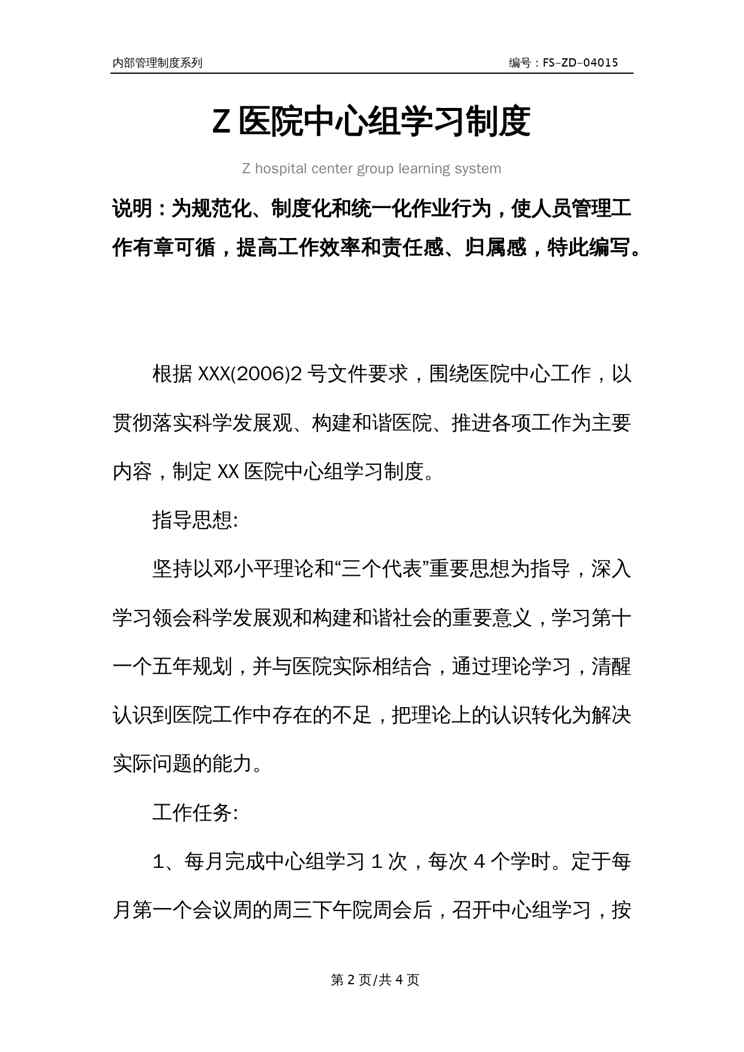 不久前,最新文档《Z医院中心组学习管理制度范本》全文正式在本站发布,感兴趣的用户可以下载阅读。 声明:本站所有文章,如无特殊说明或标注,均为本站原创发布。任何个人或组织,在未征得本站同意时,禁止复制、盗用、采集、发布本站内容到任何网站、书籍等各类媒体平台。如若本站内容侵犯了原著者的合法权益,可联系我们进行处理。