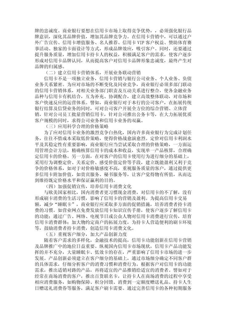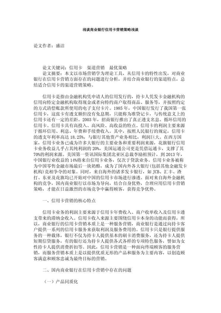 本站正式发布了《浅谈商业银行信用卡营销策略浅谈》文档,文档详细内容可下载阅读。 声明:本站所有文章,如无特殊说明或标注,均为本站原创发布。任何个人或组织,在未征得本站同意时,禁止复制、盗用、采集、发布本站内容到任何网站、书籍等各类媒体平台。如若本站内容侵犯了原著者的合法权益,可联系我们进行处理。