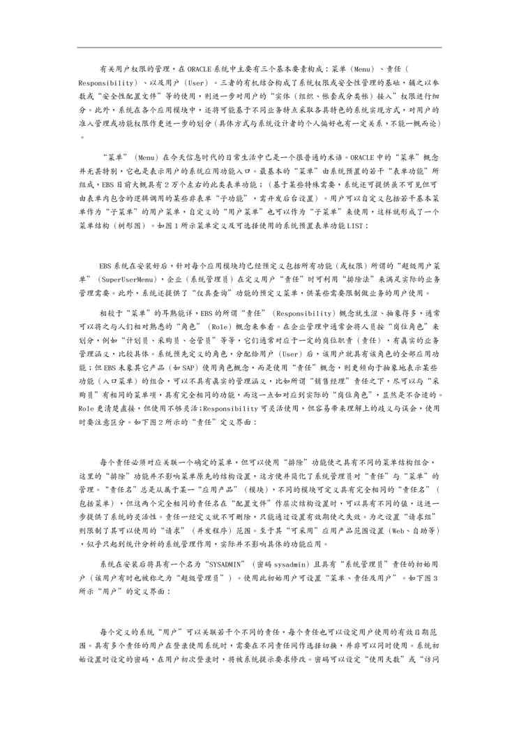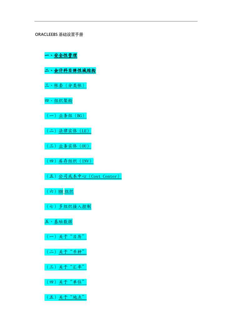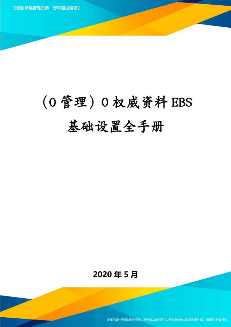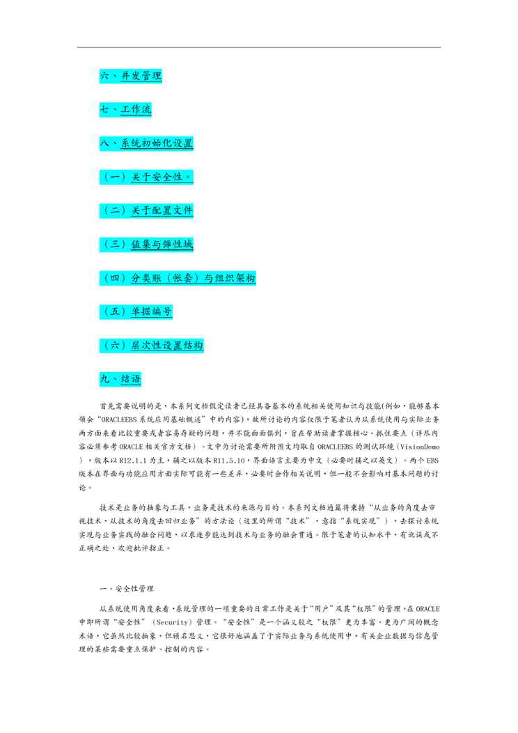 本站资深用户发布了最新的《(O管理)O权威资料EBS基础设置全手册》文档,以下内容为预览,详细内容可下载阅读。 声明:本站所有文章,如无特殊说明或标注,均为本站原创发布。任何个人或组织,在未征得本站同意时,禁止复制、盗用、采集、发布本站内容到任何网站、书籍等各类媒体平台。如若本站内容侵犯了原著者的合法权益,可联系我们进行处理。