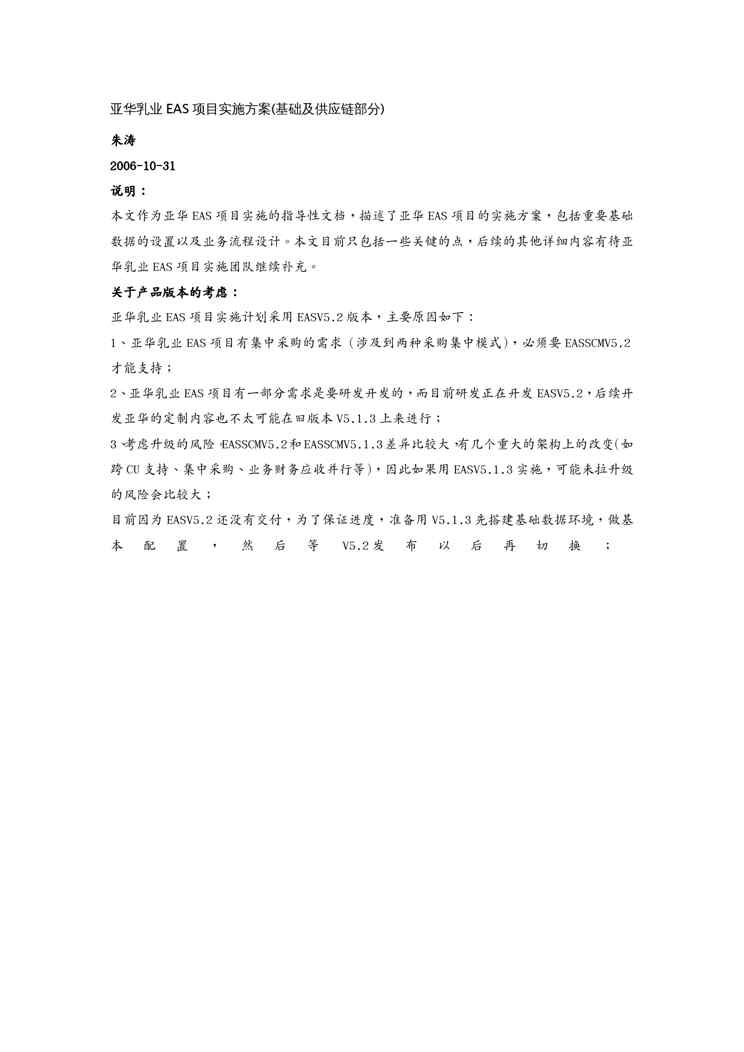 本站正式发布了《(scm供应链管理)亚华乳业EAS项目实施方案_基础及供应链》文档,文档详细内容可下载阅读。 声明:本站所有文章,如无特殊说明或标注,均为本站原创发布。任何个人或组织,在未征得本站同意时,禁止复制、盗用、采集、发布本站内容到任何网站、书籍等各类媒体平台。如若本站内容侵犯了原著者的合法权益,可联系我们进行处理。