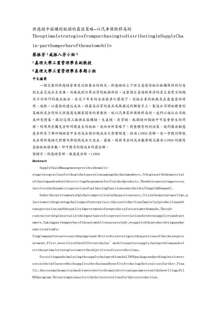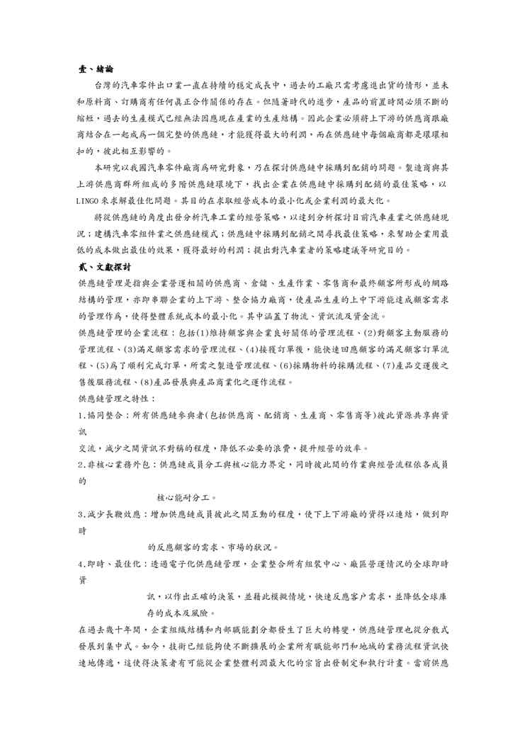 本站资深用户发布了最新的《(scm供应链管理)供应链中采购到配销的最佳策略-以汽车保险杆为例》文档,以下内容为预览,详细内容可下载阅读。