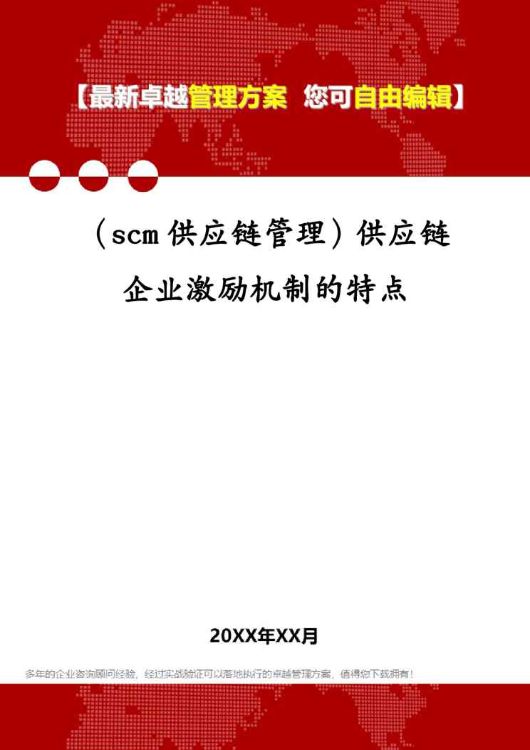 不久前,最新文档《(scm供应链管理)供应链企业激励机制的特点》全文正式在本站发布,感兴趣的用户可以下载阅读。 声明:本站所有文章,如无特殊说明或标注,均为本站原创发布。任何个人或组织,在未征得本站同意时,禁止复制、盗用、采集、发布本站内容到任何网站、书籍等各类媒体平台。如若本站内容侵犯了原著者的合法权益,可联系我们进行处理。