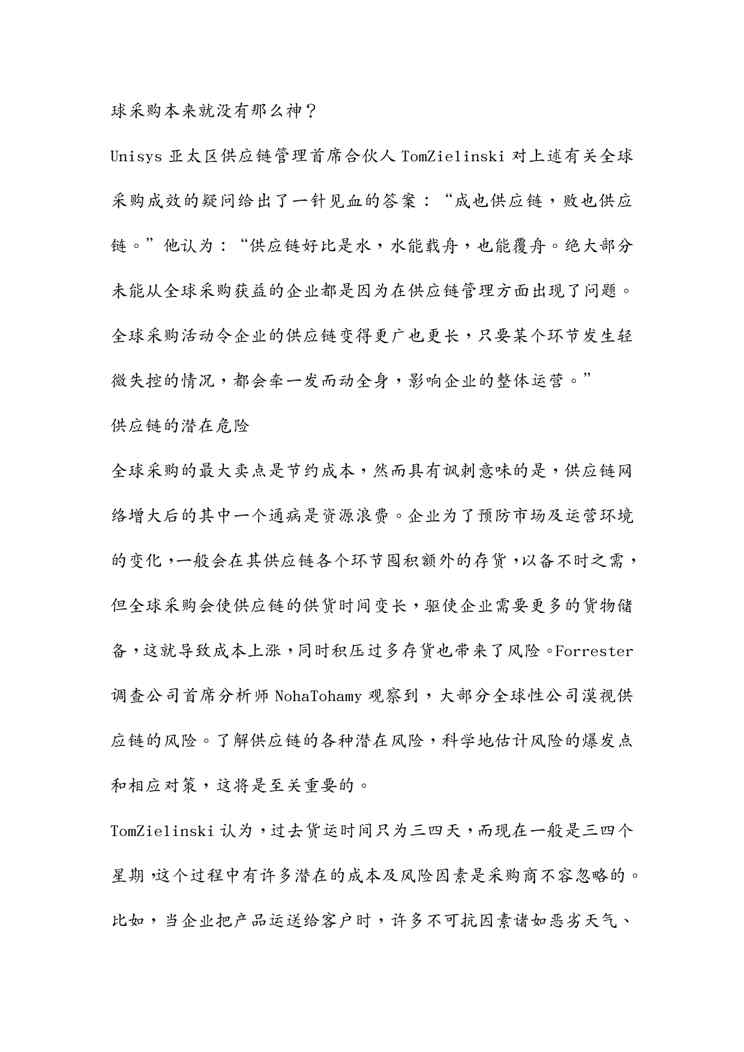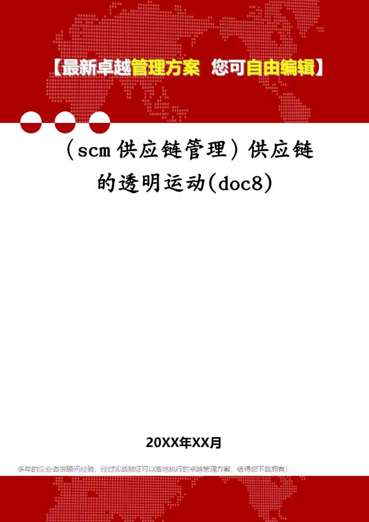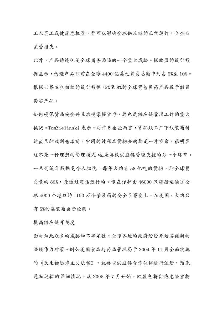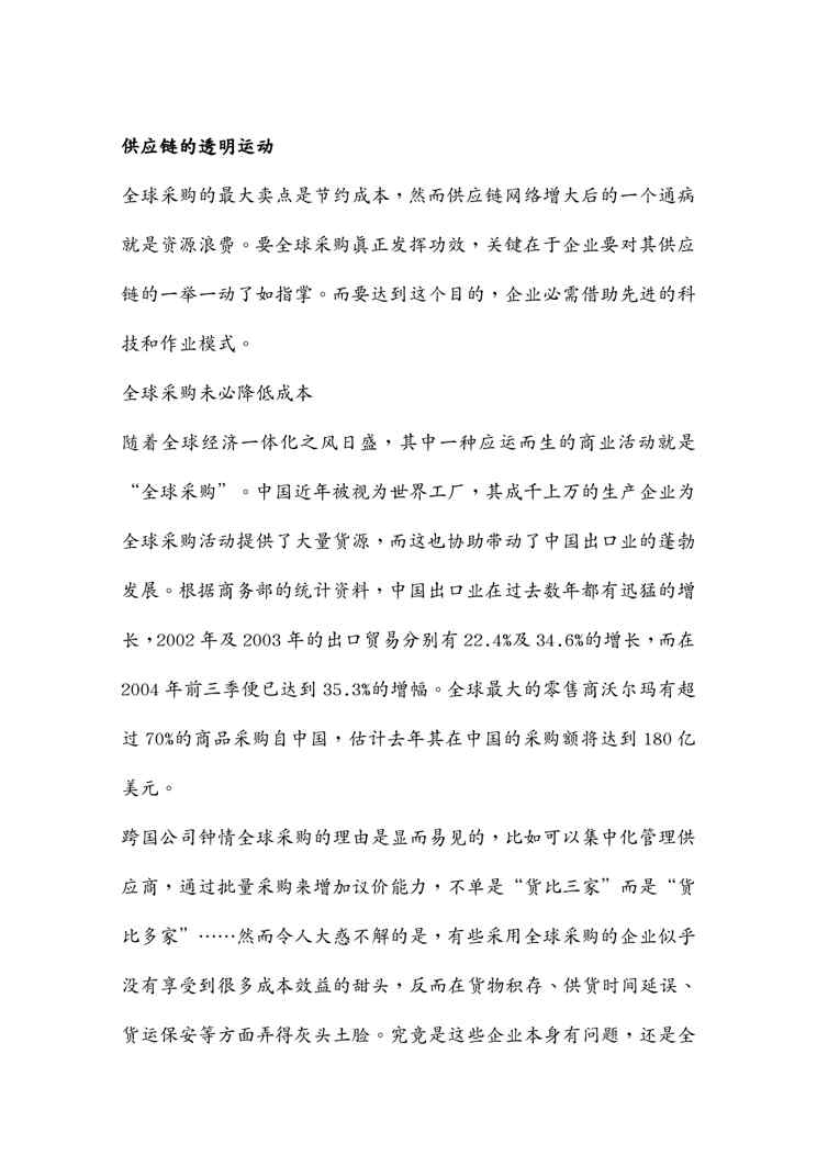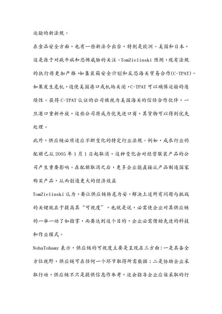 本站资深用户发布了最新的《(scm供应链管理)供应链的透明运动(doc8)》文档,以下内容为预览,详细内容可下载阅读。 声明:本站所有文章,如无特殊说明或标注,均为本站原创发布。任何个人或组织,在未征得本站同意时,禁止复制、盗用、采集、发布本站内容到任何网站、书籍等各类媒体平台。如若本站内容侵犯了原著者的合法权益,可联系我们进行处理。