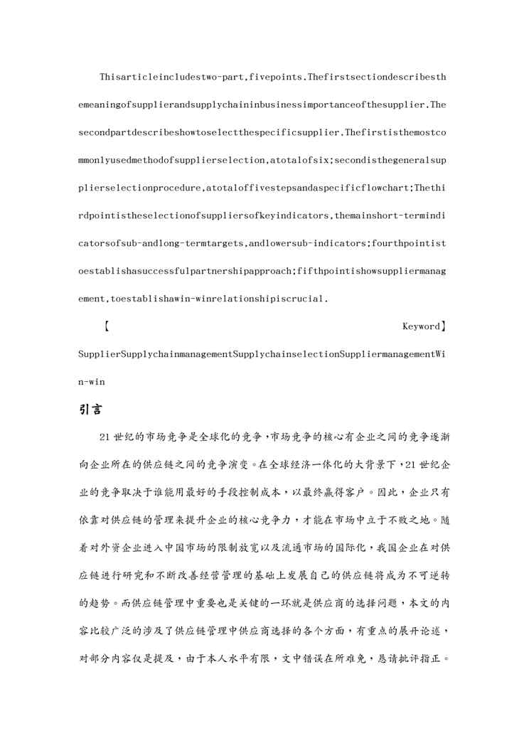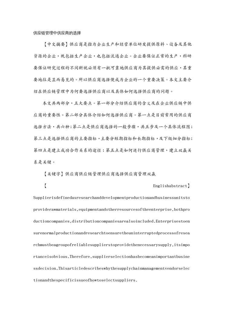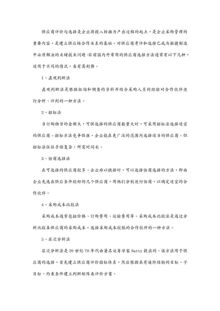 不久前,最新文档《(scm供应链管理)供应链管理中供应商的选择》全文正式在本站发布,感兴趣的用户可以下载阅读。 声明:本站所有文章,如无特殊说明或标注,均为本站原创发布。任何个人或组织,在未征得本站同意时,禁止复制、盗用、采集、发布本站内容到任何网站、书籍等各类媒体平台。如若本站内容侵犯了原著者的合法权益,可联系我们进行处理。