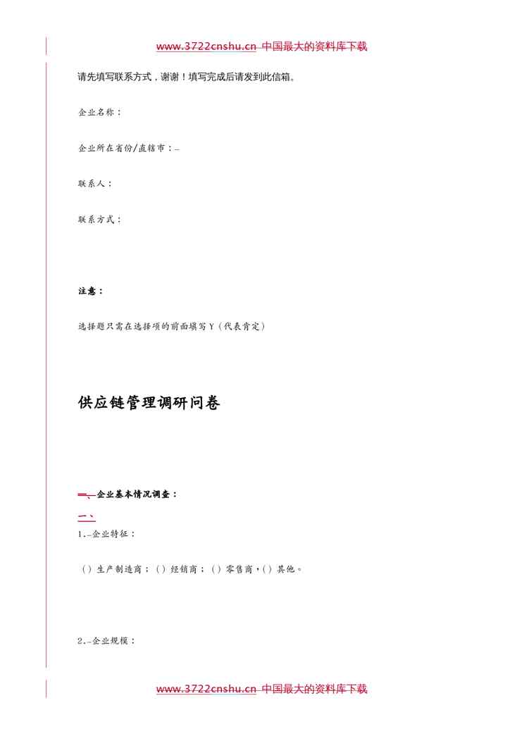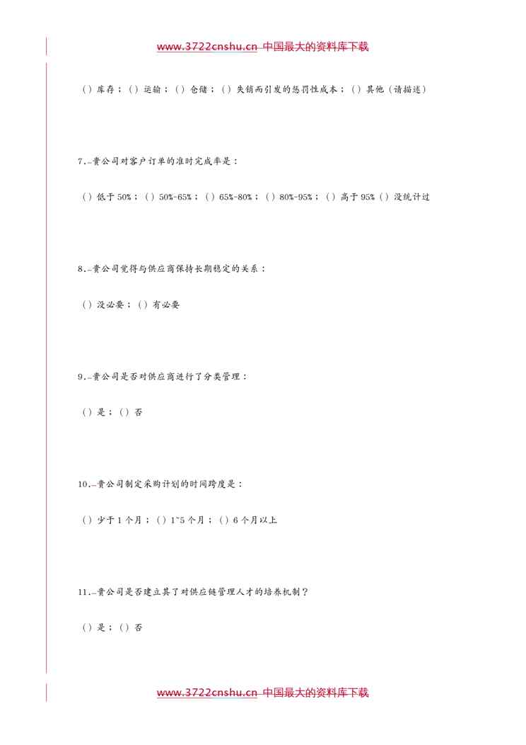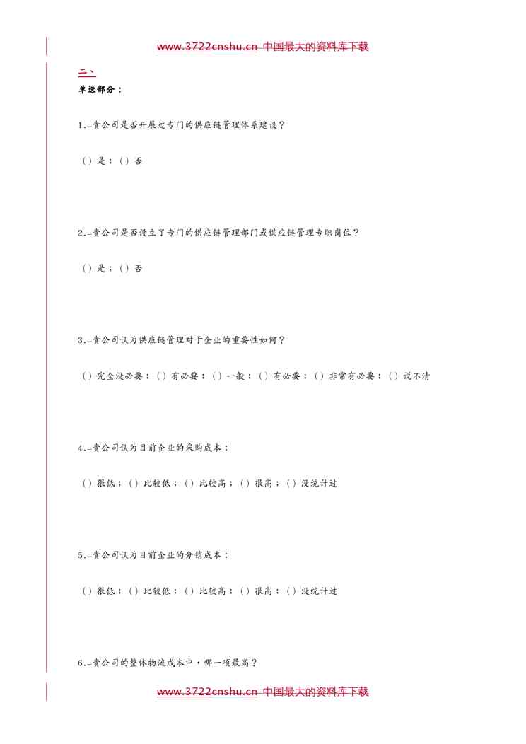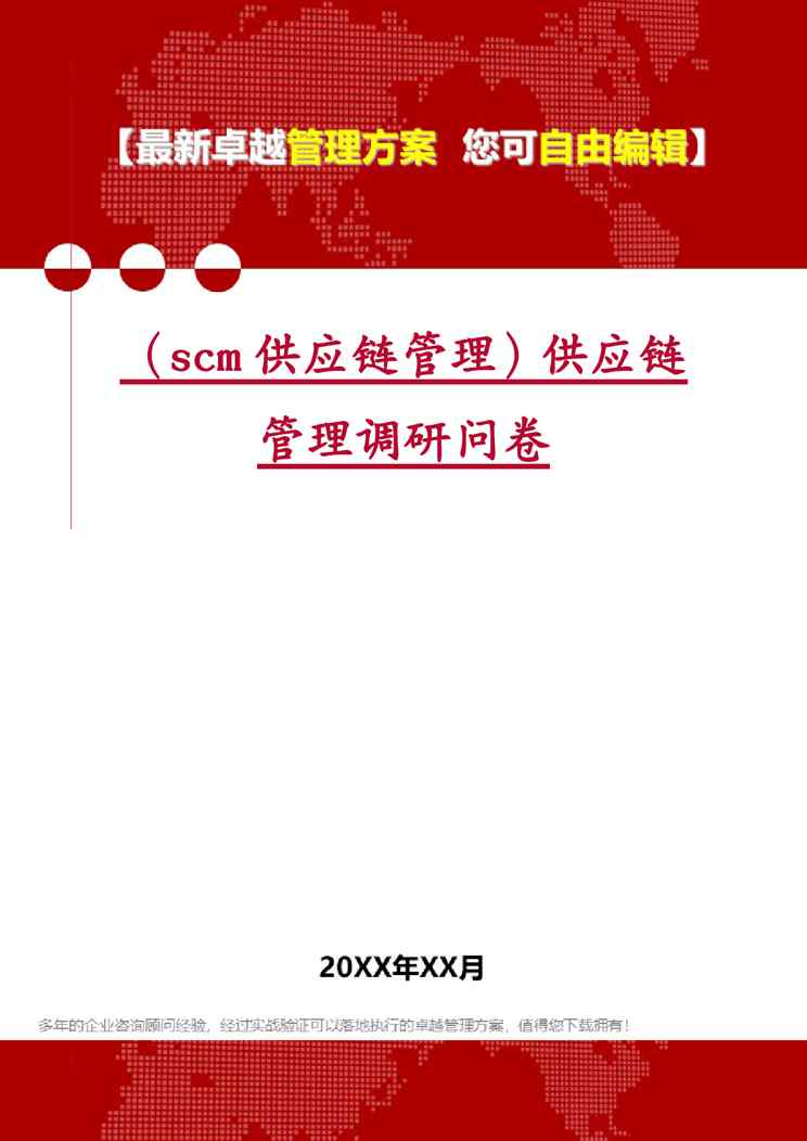 不久前,最新文档《(scm供应链管理)供应链管理调研问卷》全文正式在本站发布,感兴趣的用户可以下载阅读。 声明:本站所有文章,如无特殊说明或标注,均为本站原创发布。任何个人或组织,在未征得本站同意时,禁止复制、盗用、采集、发布本站内容到任何网站、书籍等各类媒体平台。如若本站内容侵犯了原著者的合法权益,可联系我们进行处理。