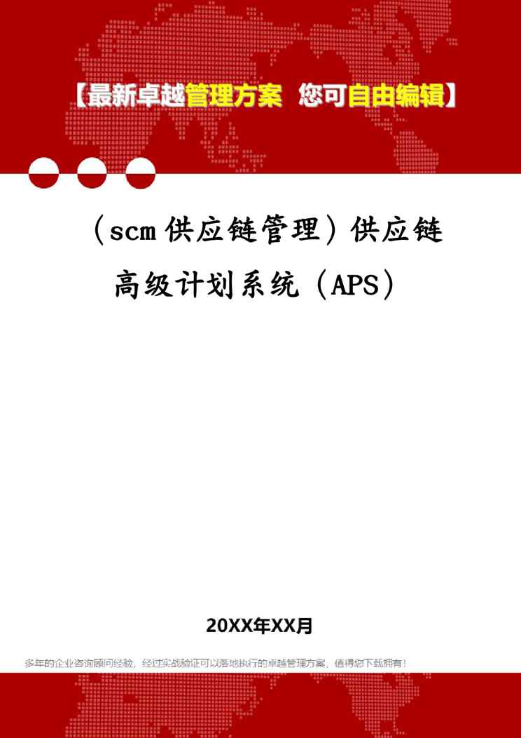 本站正式发布了《(scm供应链管理)供应链高级计划系统(APS)》文档,文档详细内容可下载阅读。 声明:本站所有文章,如无特殊说明或标注,均为本站原创发布。任何个人或组织,在未征得本站同意时,禁止复制、盗用、采集、发布本站内容到任何网站、书籍等各类媒体平台。如若本站内容侵犯了原著者的合法权益,可联系我们进行处理。