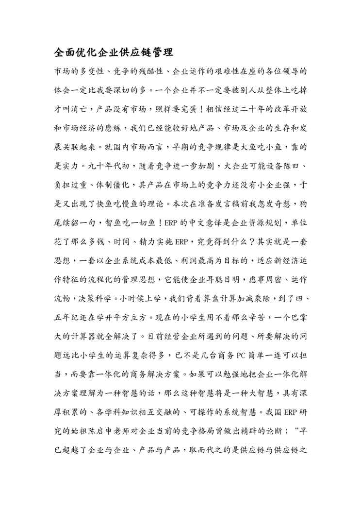 本站正式发布了《(scm供应链管理)全面优化企业供应链管理》文档,文档详细内容可下载阅读。 声明:本站所有文章,如无特殊说明或标注,均为本站原创发布。任何个人或组织,在未征得本站同意时,禁止复制、盗用、采集、发布本站内容到任何网站、书籍等各类媒体平台。如若本站内容侵犯了原著者的合法权益,可联系我们进行处理。