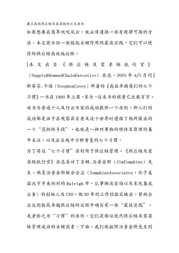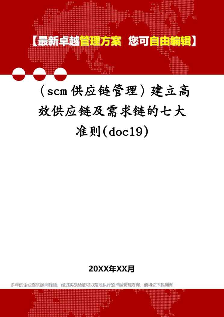 本站正式发布了《(scm供应链管理)建立高效供应链及需求链的七大准则(doc19)》文档,文档详细内容可下载阅读。 声明:本站所有文章,如无特殊说明或标注,均为本站原创发布。任何个人或组织,在未征得本站同意时,禁止复制、盗用、采集、发布本站内容到任何网站、书籍等各类媒体平台。如若本站内容侵犯了原著者的合法权益,可联系我们进行处理。