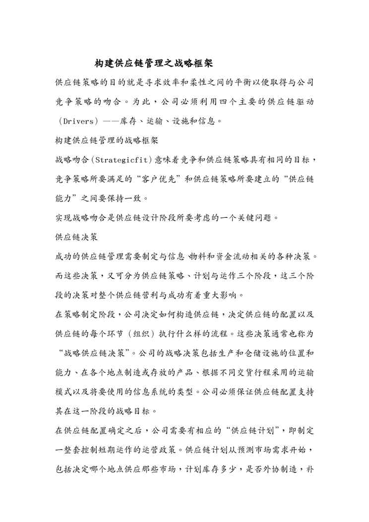 不久前,最新文档《(scm供应链管理)构建供应链管理之战略框架》全文正式在本站发布,感兴趣的用户可以下载阅读。 声明:本站所有文章,如无特殊说明或标注,均为本站原创发布。任何个人或组织,在未征得本站同意时,禁止复制、盗用、采集、发布本站内容到任何网站、书籍等各类媒体平台。如若本站内容侵犯了原著者的合法权益,可联系我们进行处理。
