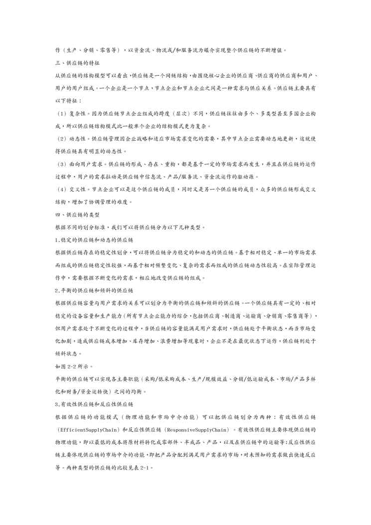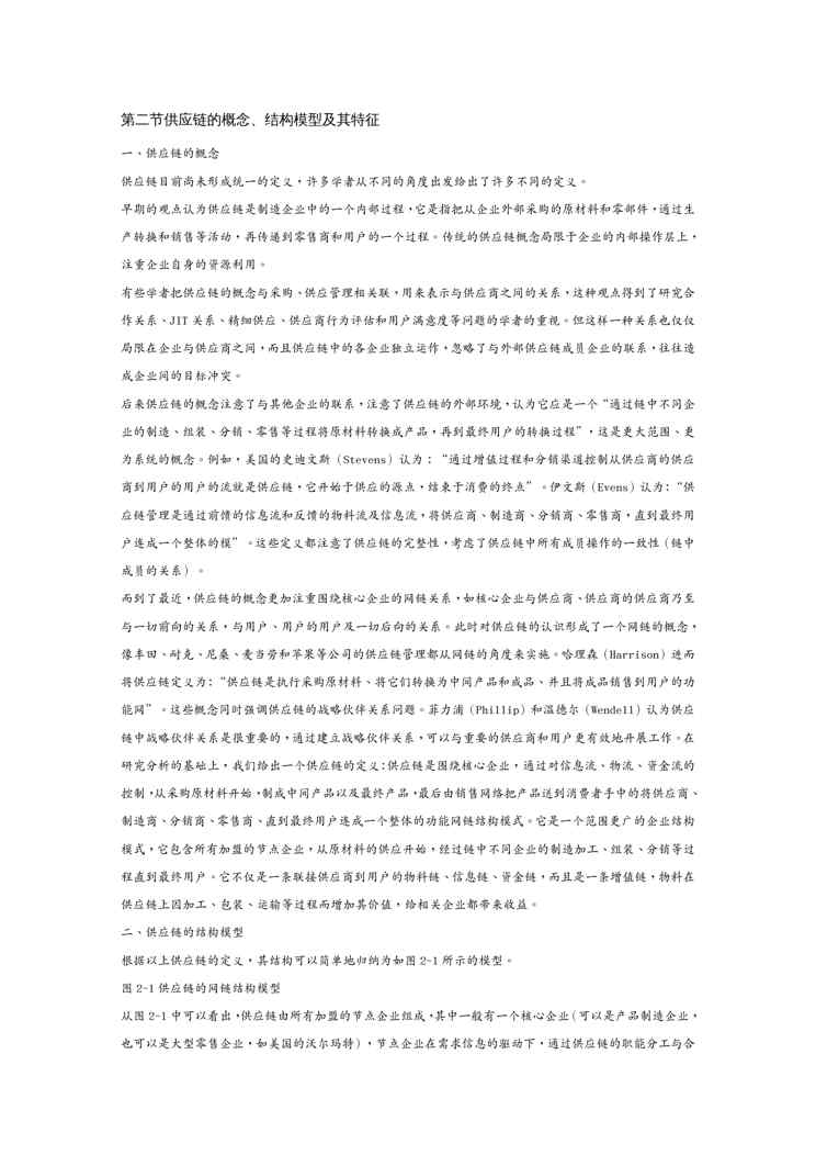 本站资深用户发布了最新的《(scm供应链管理)第二节 供应链的概念、结构模型及其特征》文档,以下内容为预览,详细内容可下载阅读。 声明:本站所有文章,如无特殊说明或标注,均为本站原创发布。任何个人或组织,在未征得本站同意时,禁止复制、盗用、采集、发布本站内容到任何网站、书籍等各类媒体平台。如若本站内容侵犯了原著者的合法权益,可联系我们进行处理。