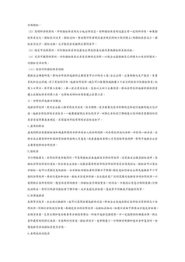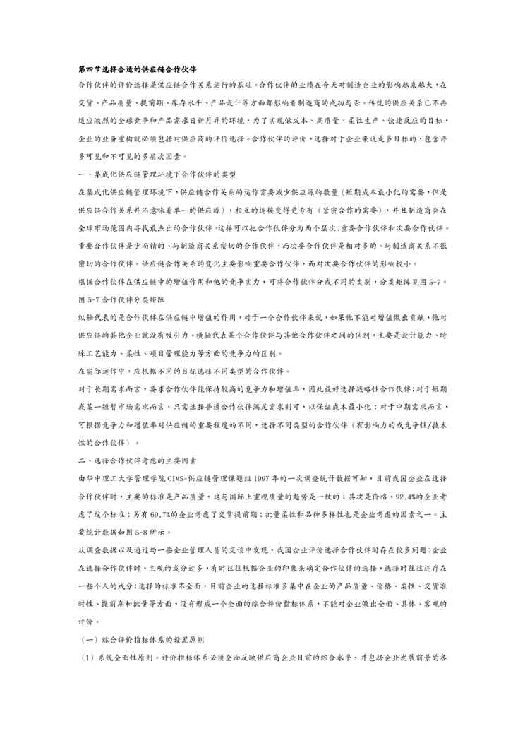 本站资深用户发布了最新的《(scm供应链管理)第四节 选择合适的供应链合作伙伴》文档,以下内容为预览,详细内容可下载阅读。 声明:本站所有文章,如无特殊说明或标注,均为本站原创发布。任何个人或组织,在未征得本站同意时,禁止复制、盗用、采集、发布本站内容到任何网站、书籍等各类媒体平台。如若本站内容侵犯了原著者的合法权益,可联系我们进行处理。