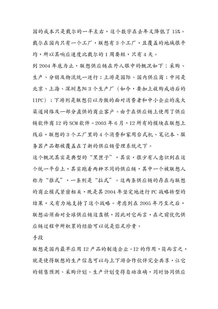 本站正式发布了《(scm供应链管理)联想:两条供应链上的竞争》文档,文档详细内容可下载阅读。 声明:本站所有文章,如无特殊说明或标注,均为本站原创发布。任何个人或组织,在未征得本站同意时,禁止复制、盗用、采集、发布本站内容到任何网站、书籍等各类媒体平台。如若本站内容侵犯了原著者的合法权益,可联系我们进行处理。