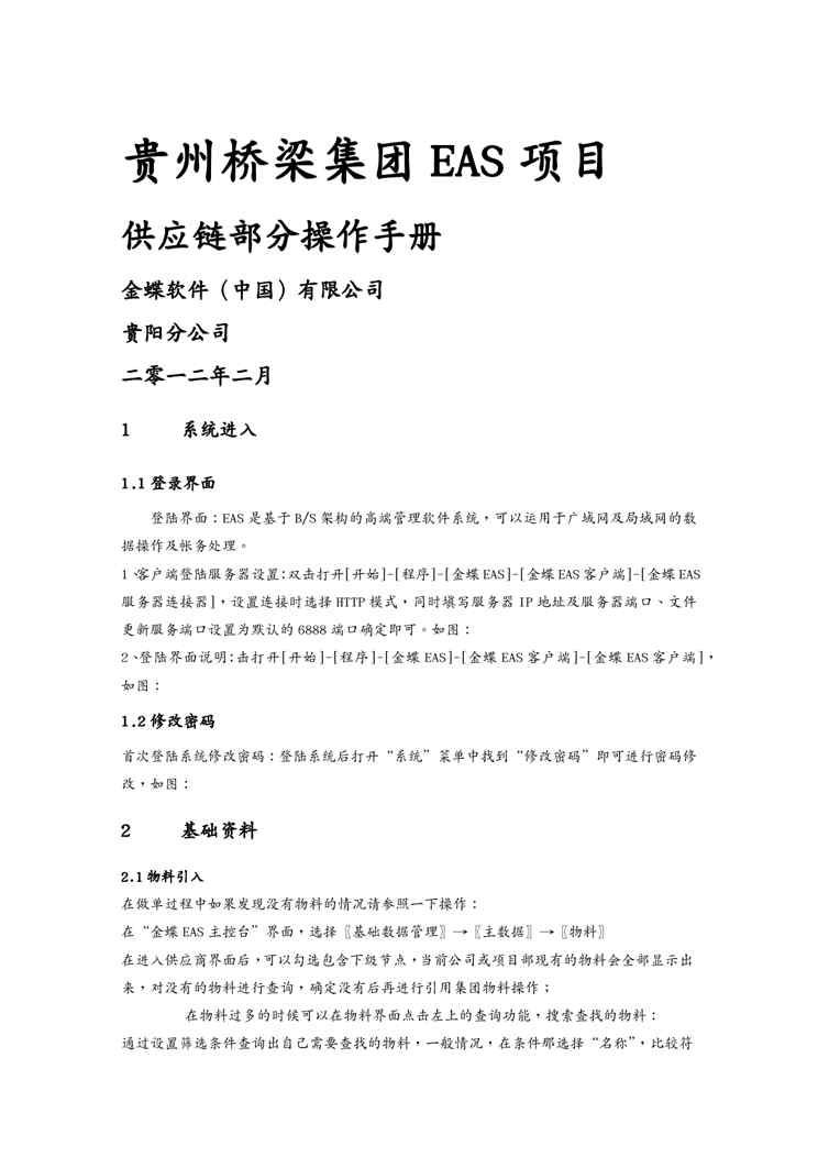 本站资深用户发布了最新的《(scm供应链管理)贵州桥梁EAS信息化项目供应链操作手册》文档,以下内容为预览,详细内容可下载阅读。 声明:本站所有文章,如无特殊说明或标注,均为本站原创发布。任何个人或组织,在未征得本站同意时,禁止复制、盗用、采集、发布本站内容到任何网站、书籍等各类媒体平台。如若本站内容侵犯了原著者的合法权益,可联系我们进行处理。