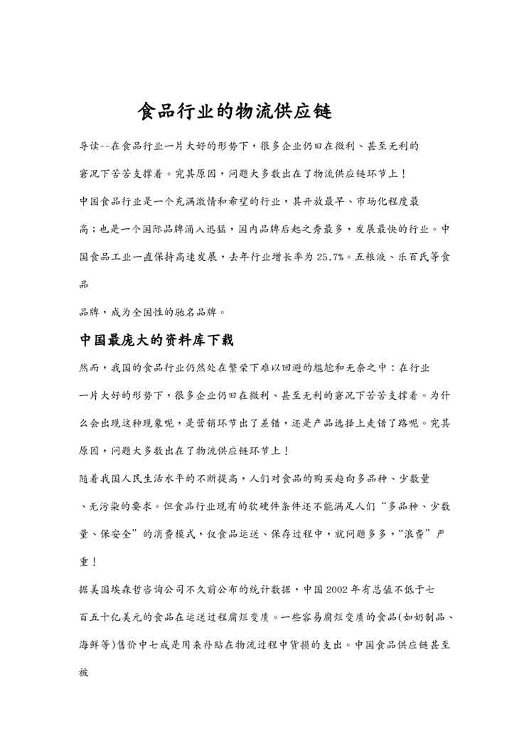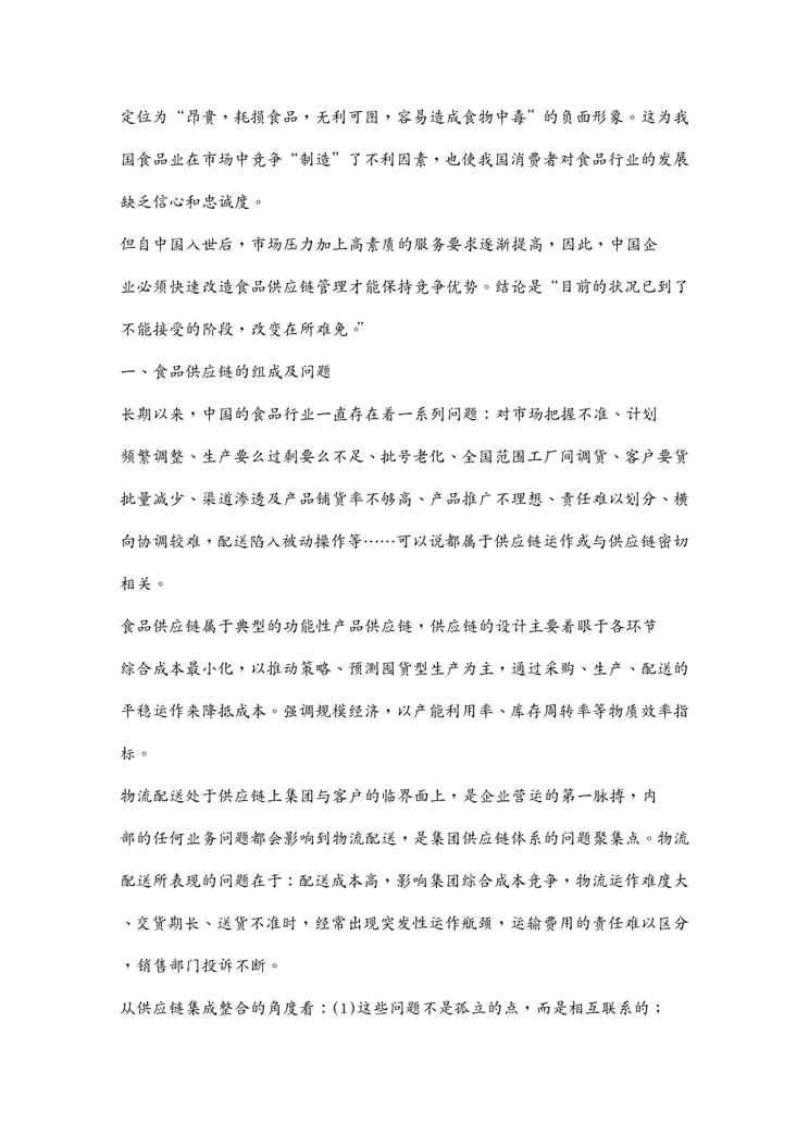 不久前,最新文档《(scm供应链管理)食品行业的物流供应链》全文正式在本站发布,感兴趣的用户可以下载阅读。 声明:本站所有文章,如无特殊说明或标注,均为本站原创发布。任何个人或组织,在未征得本站同意时,禁止复制、盗用、采集、发布本站内容到任何网站、书籍等各类媒体平台。如若本站内容侵犯了原著者的合法权益,可联系我们进行处理。