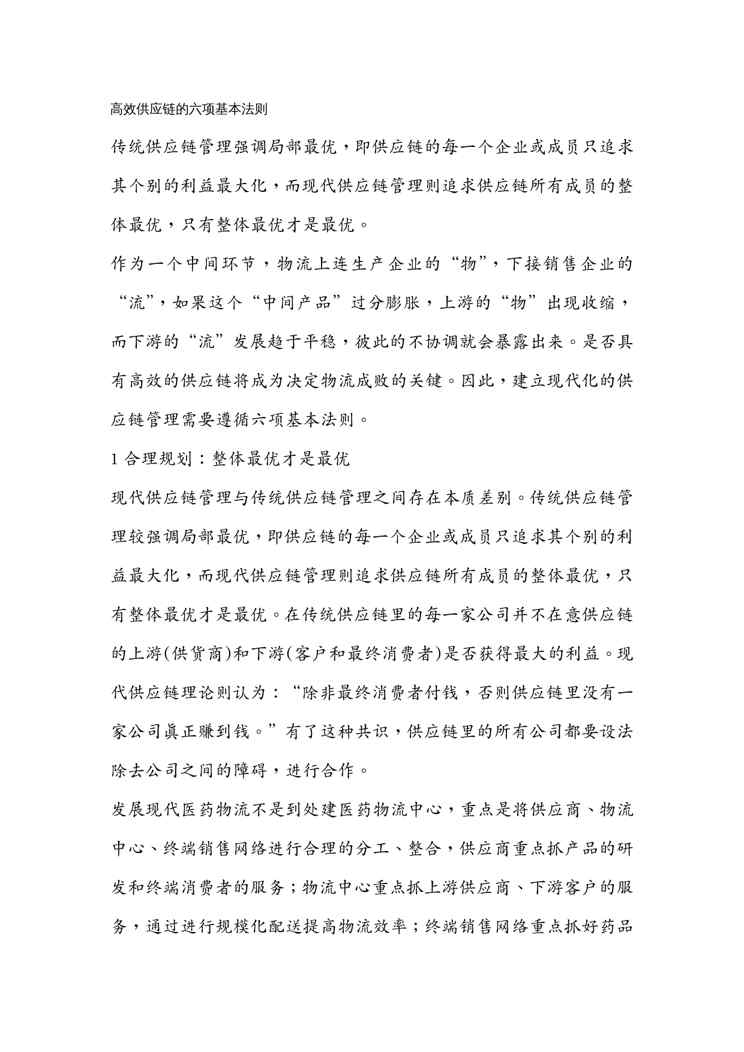 本站资深用户发布了最新的《(scm供应链管理)高效供应链的六项基本法则》文档,以下内容为预览,详细内容可下载阅读。 声明:本站所有文章,如无特殊说明或标注,均为本站原创发布。任何个人或组织,在未征得本站同意时,禁止复制、盗用、采集、发布本站内容到任何网站、书籍等各类媒体平台。如若本站内容侵犯了原著者的合法权益,可联系我们进行处理。