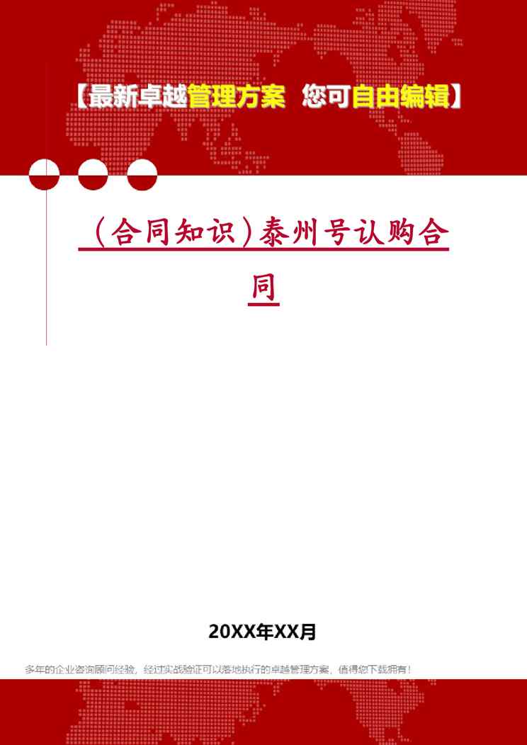不久前,最新文档《(合同知识)泰州号认购合同》全文正式在本站发布,感兴趣的用户可以下载阅读。 声明:本站所有文章,如无特殊说明或标注,均为本站原创发布。任何个人或组织,在未征得本站同意时,禁止复制、盗用、采集、发布本站内容到任何网站、书籍等各类媒体平台。如若本站内容侵犯了原著者的合法权益,可联系我们进行处理。