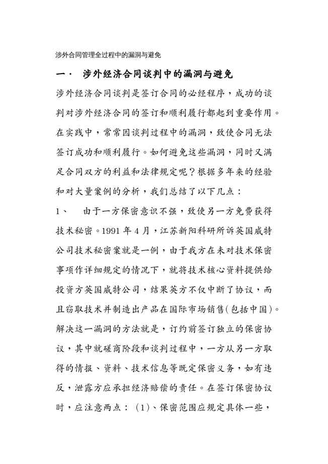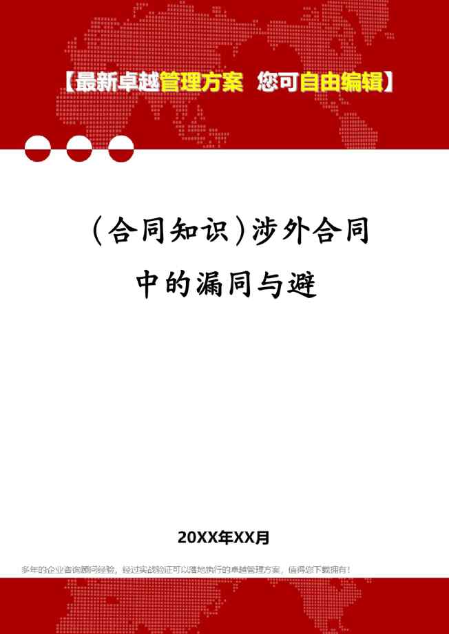 本站资深用户发布了最新的《(合同知识)涉外合同中的漏同与避》文档,以下内容为预览,详细内容可下载阅读。 声明:本站所有文章,如无特殊说明或标注,均为本站原创发布。任何个人或组织,在未征得本站同意时,禁止复制、盗用、采集、发布本站内容到任何网站、书籍等各类媒体平台。如若本站内容侵犯了原著者的合法权益,可联系我们进行处理。