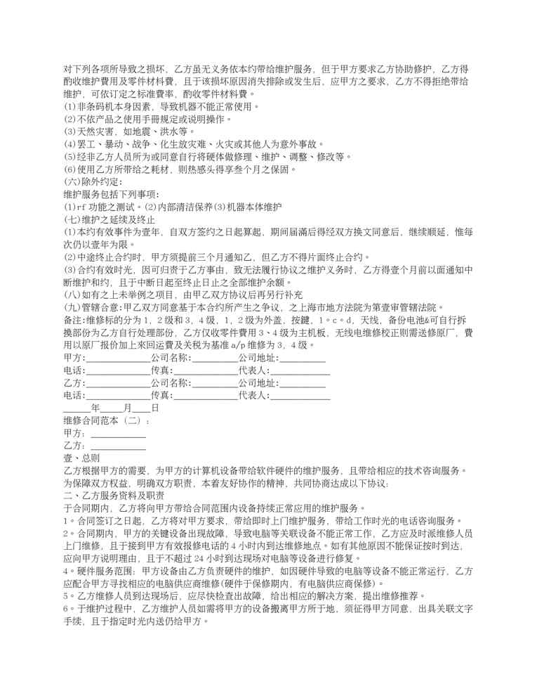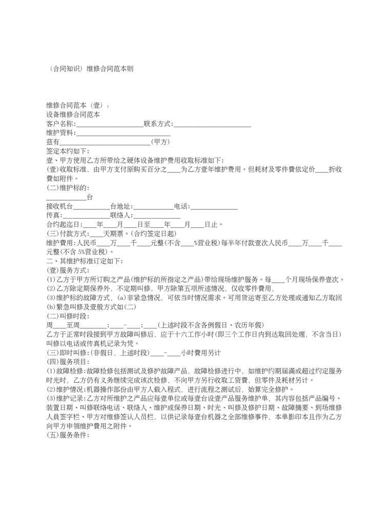 不久前,最新文档《(合同知识)维修合同范本则》全文正式在本站发布,感兴趣的用户可以下载阅读。 声明:本站所有文章,如无特殊说明或标注,均为本站原创发布。任何个人或组织,在未征得本站同意时,禁止复制、盗用、采集、发布本站内容到任何网站、书籍等各类媒体平台。如若本站内容侵犯了原著者的合法权益,可联系我们进行处理。
