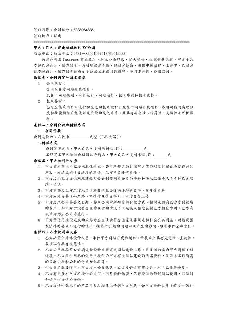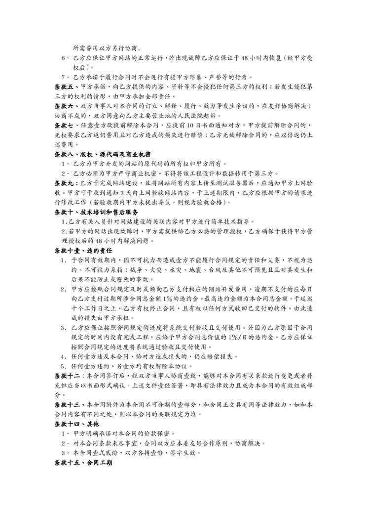 本站正式发布了《(合同知识)网站开发合同书》文档,文档详细内容可下载阅读。 声明:本站所有文章,如无特殊说明或标注,均为本站原创发布。任何个人或组织,在未征得本站同意时,禁止复制、盗用、采集、发布本站内容到任何网站、书籍等各类媒体平台。如若本站内容侵犯了原著者的合法权益,可联系我们进行处理。
