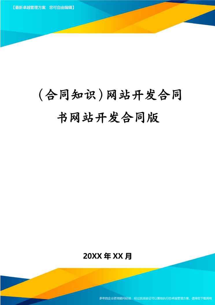 本站资深用户发布了最新的《(合同知识)网站开发合同书网站开发合同版》文档,以下内容为预览,详细内容可下载阅读。 声明:本站所有文章,如无特殊说明或标注,均为本站原创发布。任何个人或组织,在未征得本站同意时,禁止复制、盗用、采集、发布本站内容到任何网站、书籍等各类媒体平台。如若本站内容侵犯了原著者的合法权益,可联系我们进行处理。