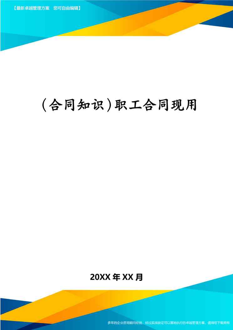 本站资深用户发布了最新的《(合同知识)职工合同现用》文档,以下内容为预览,详细内容可下载阅读。 声明:本站所有文章,如无特殊说明或标注,均为本站原创发布。任何个人或组织,在未征得本站同意时,禁止复制、盗用、采集、发布本站内容到任何网站、书籍等各类媒体平台。如若本站内容侵犯了原著者的合法权益,可联系我们进行处理。