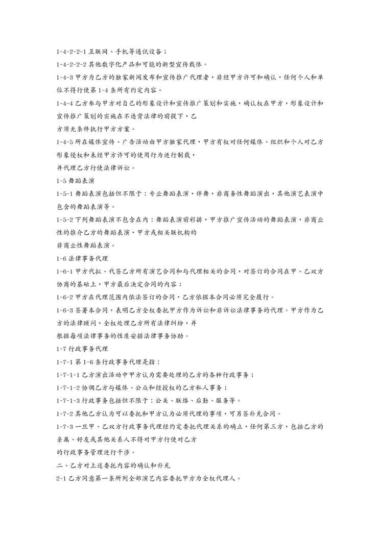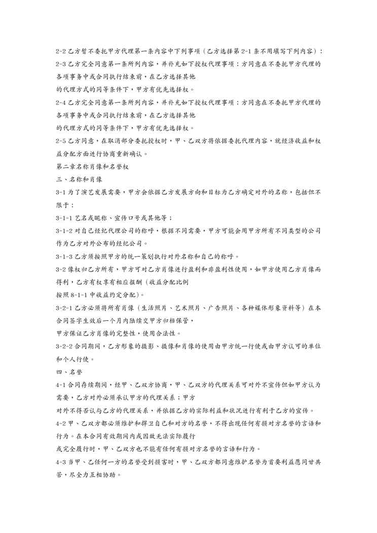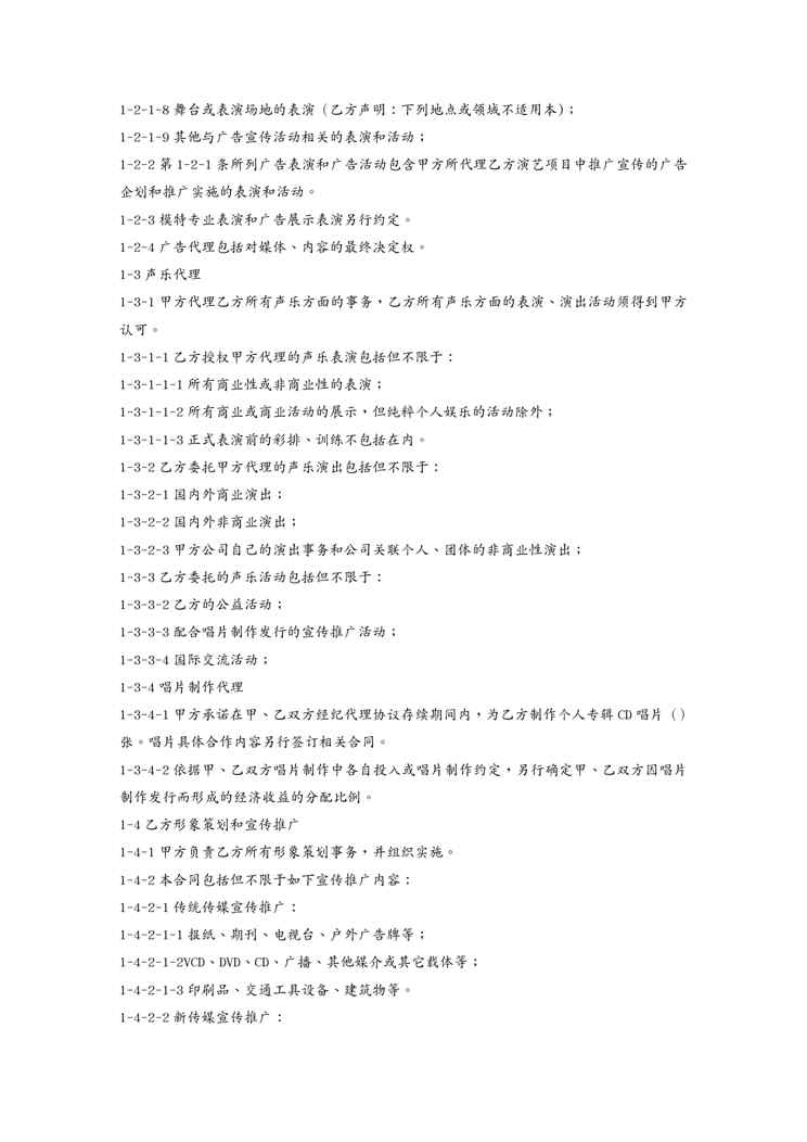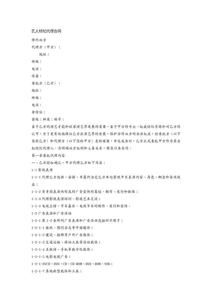 本站资深用户发布了最新的《(合同知识)艺人经纪合同范本》文档,以下内容为预览,详细内容可下载阅读。 声明:本站所有文章,如无特殊说明或标注,均为本站原创发布。任何个人或组织,在未征得本站同意时,禁止复制、盗用、采集、发布本站内容到任何网站、书籍等各类媒体平台。如若本站内容侵犯了原著者的合法权益,可联系我们进行处理。