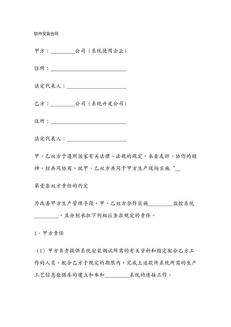 本站资深用户发布了最新的《(合同知识)软件安装合同》文档,以下内容为预览,详细内容可下载阅读。 声明:本站所有文章,如无特殊说明或标注,均为本站原创发布。任何个人或组织,在未征得本站同意时,禁止复制、盗用、采集、发布本站内容到任何网站、书籍等各类媒体平台。如若本站内容侵犯了原著者的合法权益,可联系我们进行处理。