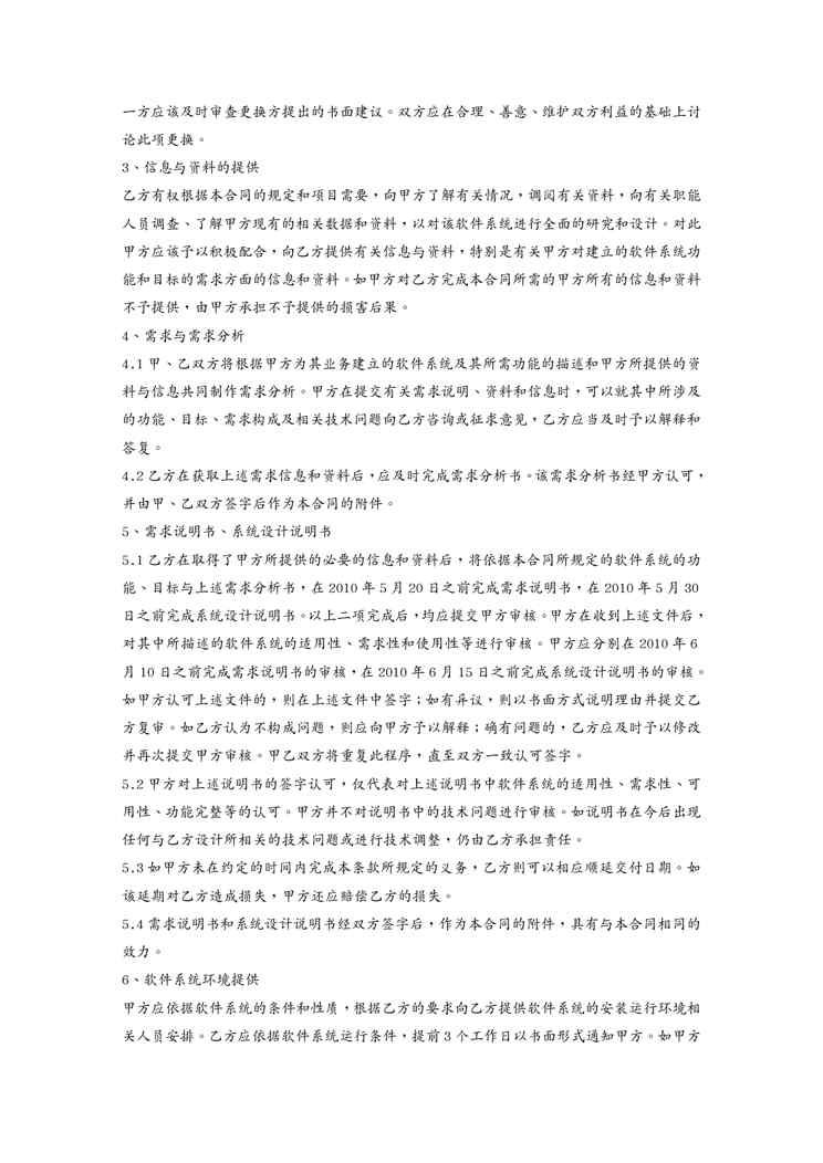 不久前,最新文档《(合同知识)软件开发合同》全文正式在本站发布,感兴趣的用户可以下载阅读。 声明:本站所有文章,如无特殊说明或标注,均为本站原创发布。任何个人或组织,在未征得本站同意时,禁止复制、盗用、采集、发布本站内容到任何网站、书籍等各类媒体平台。如若本站内容侵犯了原著者的合法权益,可联系我们进行处理。