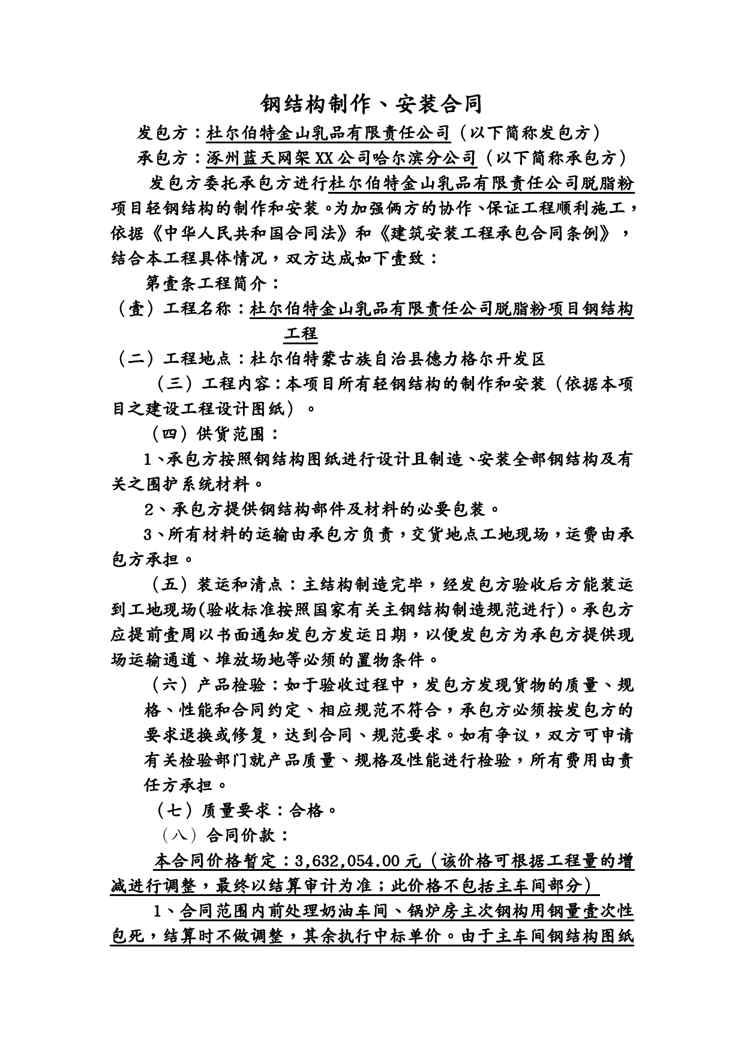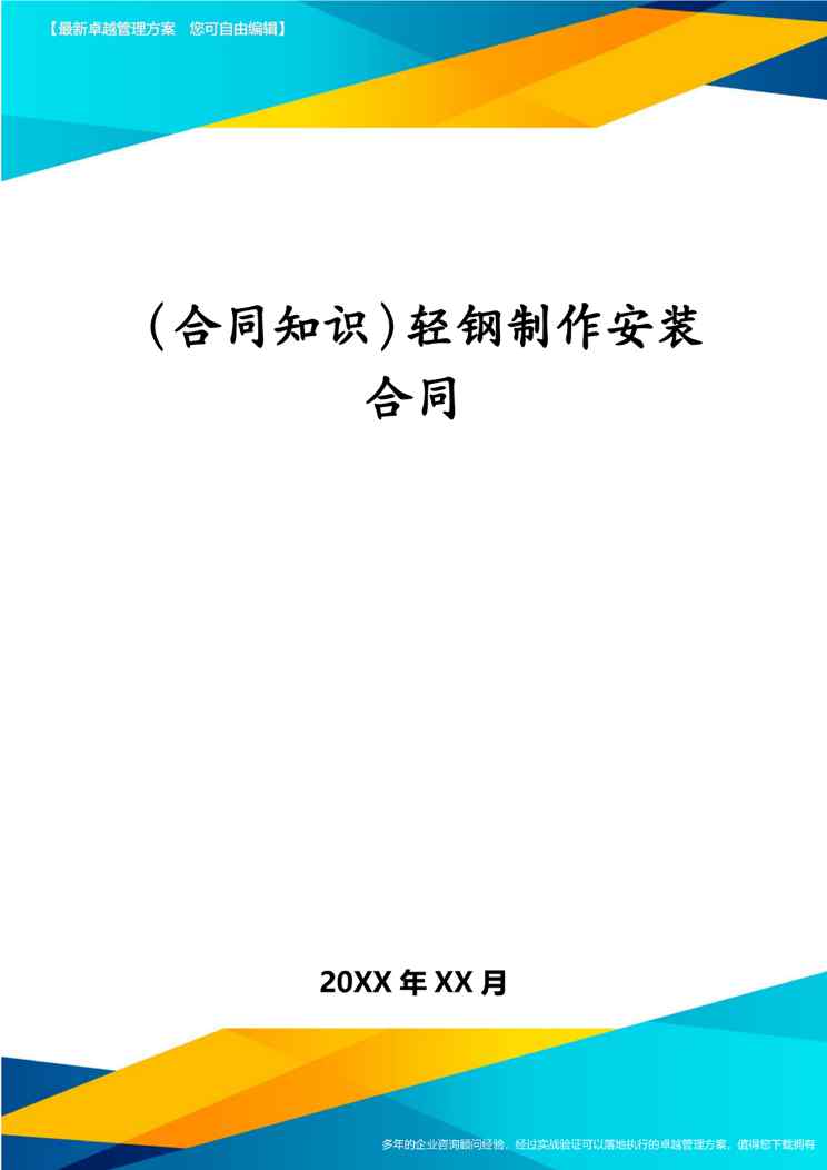 本站正式发布了《(合同知识)轻钢制作安装合同》文档,文档详细内容可下载阅读。 声明:本站所有文章,如无特殊说明或标注,均为本站原创发布。任何个人或组织,在未征得本站同意时,禁止复制、盗用、采集、发布本站内容到任何网站、书籍等各类媒体平台。如若本站内容侵犯了原著者的合法权益,可联系我们进行处理。