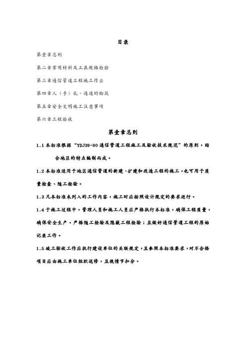 不久前,最新文档《(通信企业管理)通信管道工程施工作业指导书》全文正式在本站发布,感兴趣的用户可以下载阅读。 声明:本站所有文章,如无特殊说明或标注,均为本站原创发布。任何个人或组织,在未征得本站同意时,禁止复制、盗用、采集、发布本站内容到任何网站、书籍等各类媒体平台。如若本站内容侵犯了原著者的合法权益,可联系我们进行处理。